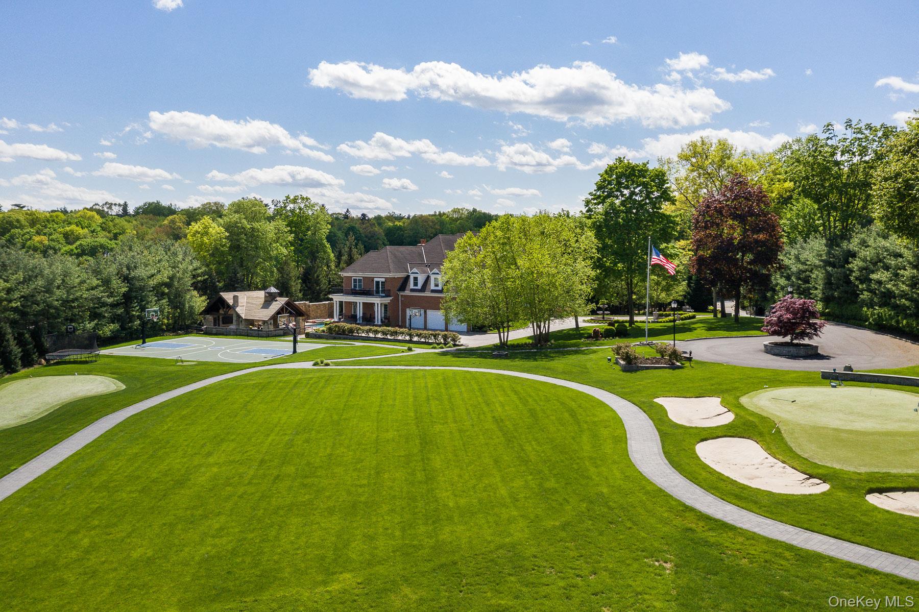 Why Join A Country Club When You Can Buy Your Own! PURCHASE, NY | 5 ACRES | FORMERLY 2 & 4 ALYSSA LANE A Rare Dual-Parcel Estate with Subdivision Potential Set on five beautifully manicured acres in coveted Purchase, NY, this extraordinary custom brick Colonial represents not only a world-class private estate — but a compelling real estate opportunity. Originally recorded as two separate parcels — 2 and 4 Alyssa Lane — and subsequently merged into one expansive five-acre estate, the property carries the potential for future re-subdivision into two 2.5-acre lots, subject to Town of Harrison Planning Board approval. For the discerning buyer, this adds a rare layer of flexibility and long-term value that is virtually impossible to find in this market. A gated entry sets a grand tone upon arrival, opening to stained glass doors and a striking marble foyer with a sweeping staircase and sun-drenched interiors. Designed for both grand-scale entertaining and everyday living, the home flows seamlessly through a formal dining room, multiple sitting areas, a living room with fireplace, a wet bar, and a richly appointed wood-paneled library with its own fireplace. At the heart of the home, the designer gourmet kitchen outfitted with a custom herringbone marble backsplash, quartz countertops, handcrafted cabinetry, and an oversized center island with built-in refrigerator drawers. Top-tier appliances include a dual-fuel Wolf range with griddle, Sub-Zero refrigerator, Bosch dishwashers, and Wolf wall oven and microwave. A butler’s pantry enhances both convenience and entertaining capacity, while sliding glass doors open to a wraparound veranda overlooking the pool, spa, and cascading waterfall. The main level also offers a first-floor ensuite bedroom, two powder rooms, and a thoughtfully designed mudroom with built-ins connecting to the three-car garage. The primary suite is a private sanctuary unto itself — featuring soaring ceilings with intricate moldings, custom architectural windows, a statement fireplace, dual custom walk-in closets with extensive built-ins, two full baths, a steam shower, and a dedicated wellness area. Four additional ensuite bedrooms, a flexible playroom or office, a full laundry room, and a bedroom suite above the garage complete the upper level. The walk-out lower level is designed for recreation and relaxation, offering a spacious living area, gym, game room, wet bar, wine and tasting room, secondary laundry, an area designed for a golf simulator, and a summer kitchen with sliding glass doors opening directly to the outdoor entertaining spaces. Outside, the grounds transform into a private resort — heated in-ground pool and spa, a dramatic stone waterfall, a fully equipped pavilion with kitchen appliances, an oversized barbecue, and pizza oven, a basketball court, a tranquil pond stocked with goldfish with a fountain, winding pathways, and a professionally designed putting green. Multiple landscaped zones offer distinct areas of privacy and enjoyment throughout every season. A property of this scale, quality, and optionality rarely comes to market. Whether purchased as a singular private estate or explored for its subdivision potential, this is a once-in-a-generation opportunity in one of Westchester’s most prestigious communities. Subdivision potential subject to Town of Harrison Planning Board approval. Buyers to conduct their own due diligence.