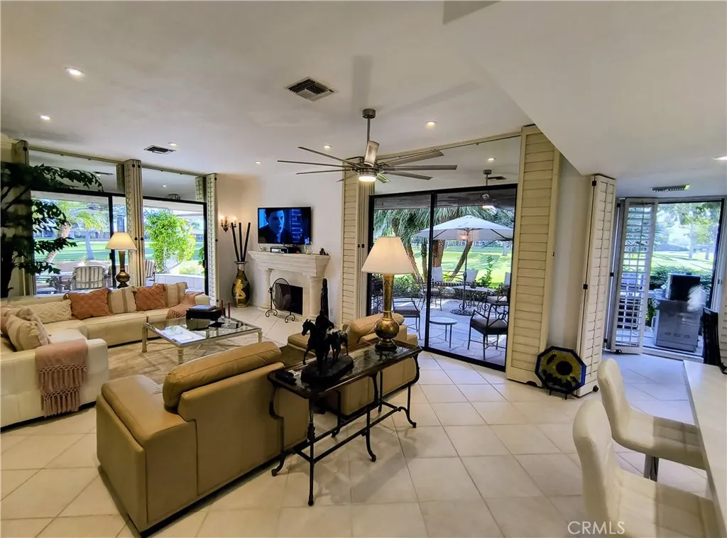 Discover Ultimate Desert Living at the Springs Country Club. most sought-after Residential Community in Rancho Mirage. IF LOCATION AND VIEWS ARE IMPORTANT TO YOU LOOK NO FURTHER. This Home is on the NEWLY DESIGNED Spring Country Club Golf Course. The Springs is more than a community-- it's a lifestyle. amenities rival those offered at the best Private Clubs. Enjoy State-of-the-art Fitness Center, golf, tennis, pickleball, bocce ball, and a vibrant array of social clubs activities including art, wine, books, card games, and an engaging speaker series. This Phenomenal Location faces Unparalleled facing South with sweeping breathtaking panoramic view of the majestic Santa Rosa and San Jacinto Mountains, elevated about 6 ft overlooking the 11th fairway two picturesque Lakes, 11th ,12th and 15th greens. This Oasis boasts 26 mature palms, and pine trees, 3 patios and walkways all covered in Arizona Flagstone. Entry & Front patio has a 7ft wall waterfall and garden fountain. Backyard has outdoor Mist Cooling System, Ceiling Fans, Beautifully Landscaping W lighting. And Breath-Taking views. This Home was Remodel in 2024. This upgraded 3-bedroom, 3-bathroom home features en-suite bathrooms for each bedroom, offering privacy and comfort for you and your guests. A sophisticated and well-equipped kitchen with custom cabinetry, state-of-the-art Chefs Kitchen with all stainless appliances, Quartz counter tops, and Reverse Osmosis water system open concept kitchen flows seamlessly into the spacious great room, you have showcasing expansive beautiful views from every room in the home. Thro