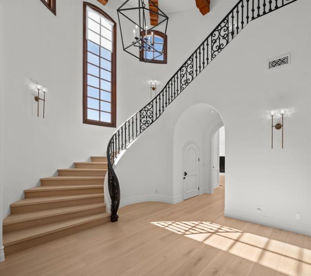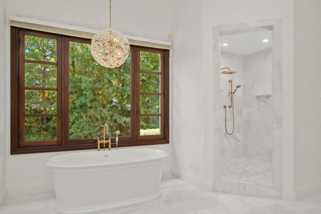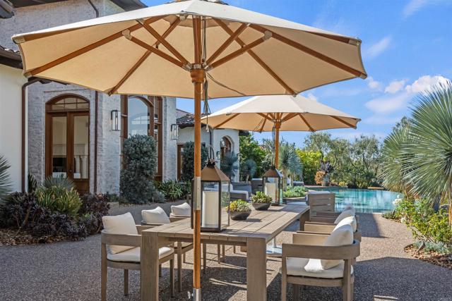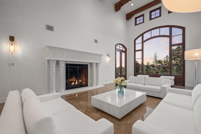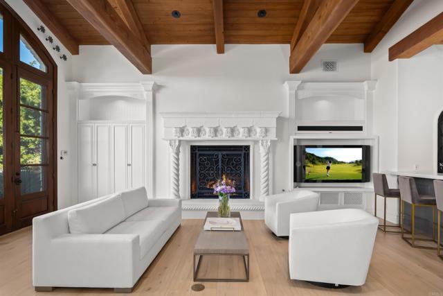 This stunning 5+ bedroom modern European estate offers an expansive view that overlooks the 9th Fairway and iconic clubhouse within the prestigious guard-gated community of The Bridges in Rancho Santa Fe. Extensively remodeled, completed in 2025, the 8,900+sqft residence captures the essence of refined living with a seamless blend of craftsmanship, comfort, and design—all framed by one of the community’s most sought-after views. Inside, natural light pours through expansive windows and French doors that open to the golf course, creating a perfect indoor/outdoor connection ideal for both daily living and entertaining. Every finish was chosen with care—from hand-finished limewashed fireplaces and European white-oak floors to Italian marble countertops, burnished-brass fixtures, and designer lighting. The reimagined kitchen serves as the heart of the home with a farmhouse-style sink, premium appliances, oversized walk-in pantry, bar, and temperature-controlled wine cellar that make entertaining effortless. Additional spaces include a built-out home theater, elegant office, and a separate guest wing with private access that offers versatility for guests, multigenerational living, or creative use. The primary suite is a true retreat, featuring a newly remodeled bathroom in Italian marble with dual vanities, a freestanding soaking tub, and spa-like tranquility. Outside, the lush grounds create a resort-like backdrop for year-round living with a saltwater pool and spa, built-in BBQ bar, and sweeping fairway views framed by golden evening light over the clubhouse. Set within one of Rancho Santa Fe’s most desirable golf communities, residents of The Bridges enjoy world-class amenities, fine dining, and 24-hour security—all just minutes from Rancho Santa Fe Village, top-rated schools, and the coastal towns of Del Mar, Solana Beach and Encinitas.
