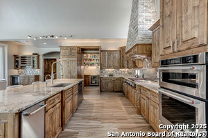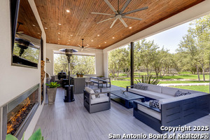 Exterior Features :Patio Slab, Covered Patio, Bar-B-Que Pit/Grill, Gas Grill, Deck/Balcony, Wrought Iron Fence, Sprinkler System, Double Pane Windows, Mature Trees