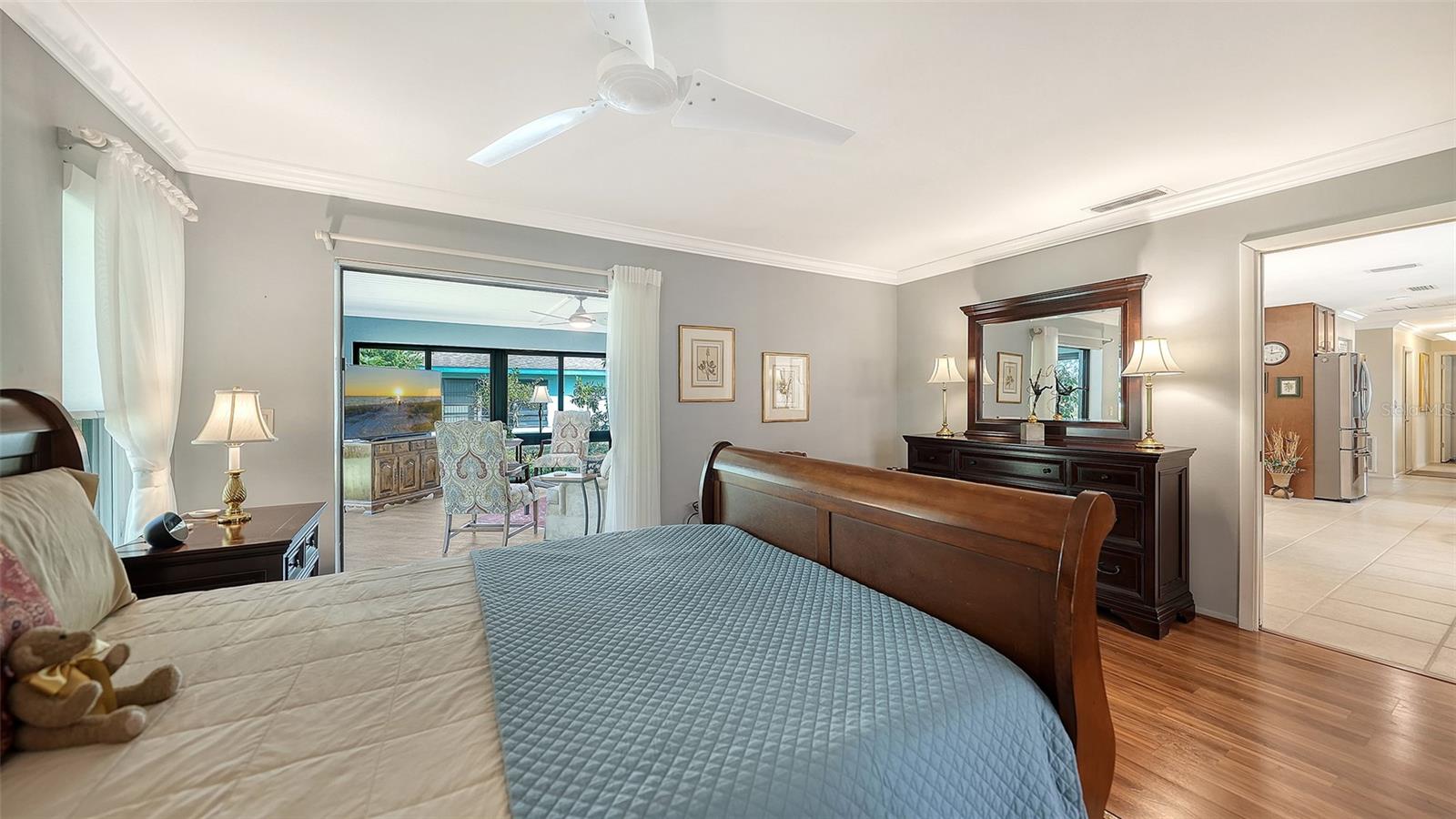 The split floor plan places guest bedrooms on the opposite side of the home, ensuring comfort and privacy for everyone. The expansive layout and light-filled interiors create an immediate sense of calm and openness the moment you walk through the door.