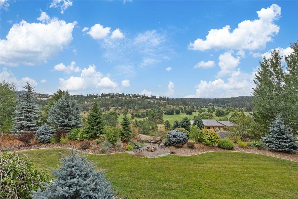 VIEW, VIEW, VIEW! Welcome to The Ridge at Hangman – one of Spokane’s most coveted gated communities. This custom craftsman rancher offers impeccable attention to detail, high end finishes, and jaw dropping, unobstructed views of the surrounding area - including a direct overlook of the 14th fairway. Situated on a sprawling 1.67 acre lot, this home features a gourmet kitchen w/knotty alder cabinetry, oversized island, & ample space for entertaining. Vaulted ceilings & a stone gas fireplace in living room. Formal dining room w/tray ceiling. Primary suite w/a luxurious ensuite bath: jetted tub, massive tiled walk-in shower, & walk-in closet. New carpet, freshly painted exterior, & refinished northern red maple hardwoods. Covered back deck w/nat gas line for BBQ. Landscaped w/fire-pit, pickle ball/v-ball court, garden beds & hot tub. Huge 3-car garage w/add'l parking area. Potential to finish add'l bdrm & bath on lower level. Direct access to miles of trails & golf course. 11 min commute to downtown or airport!
