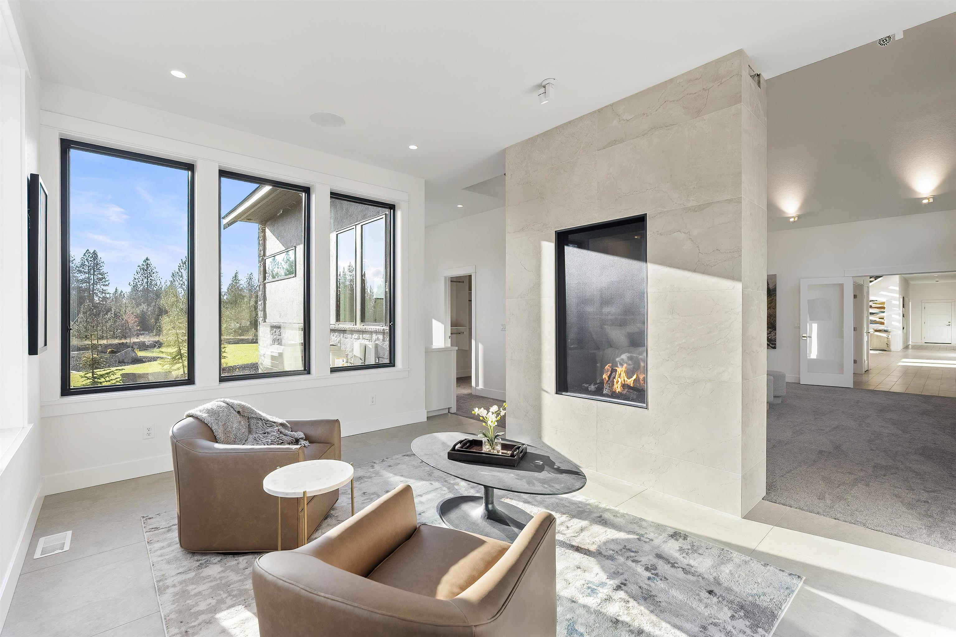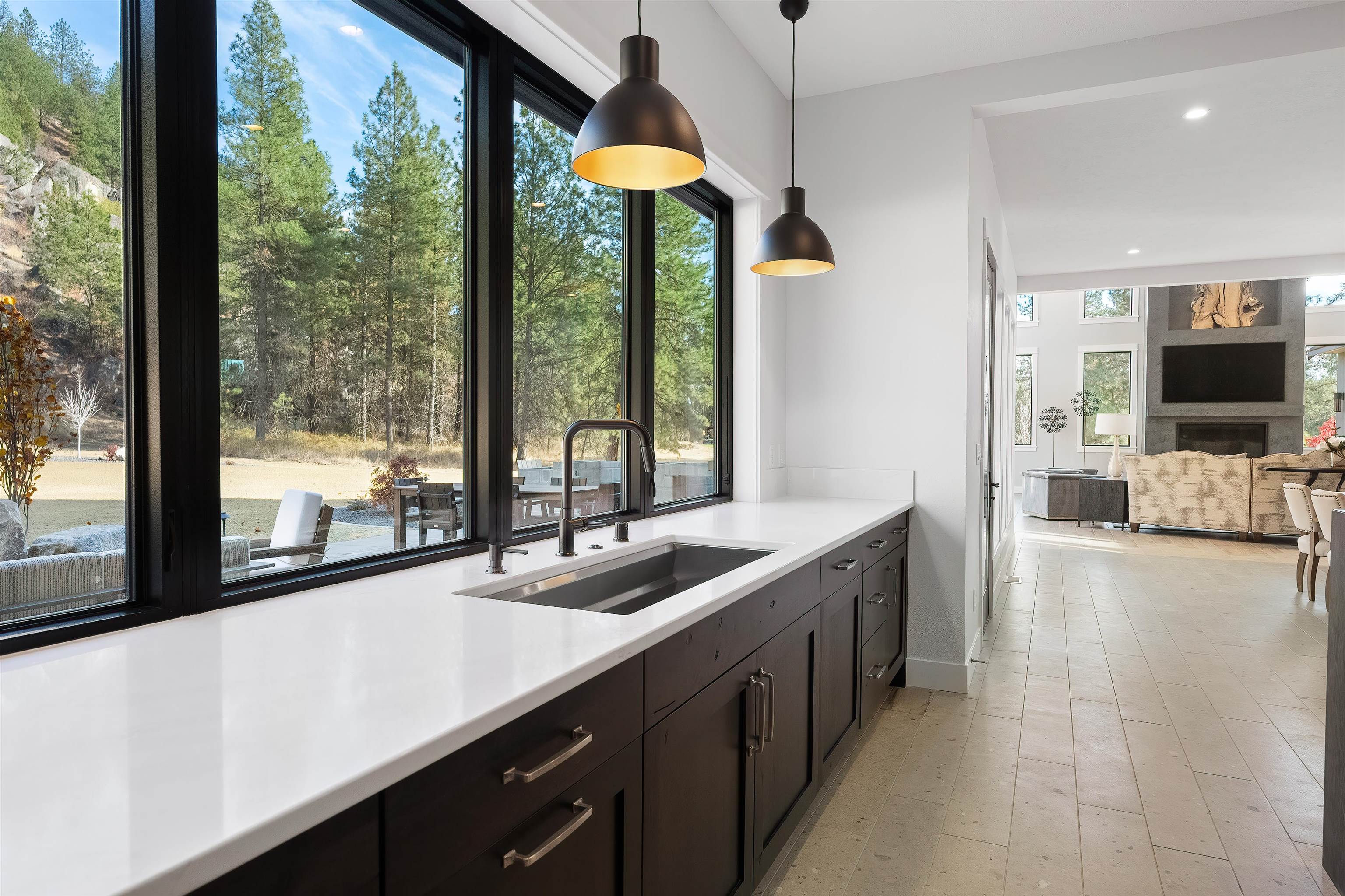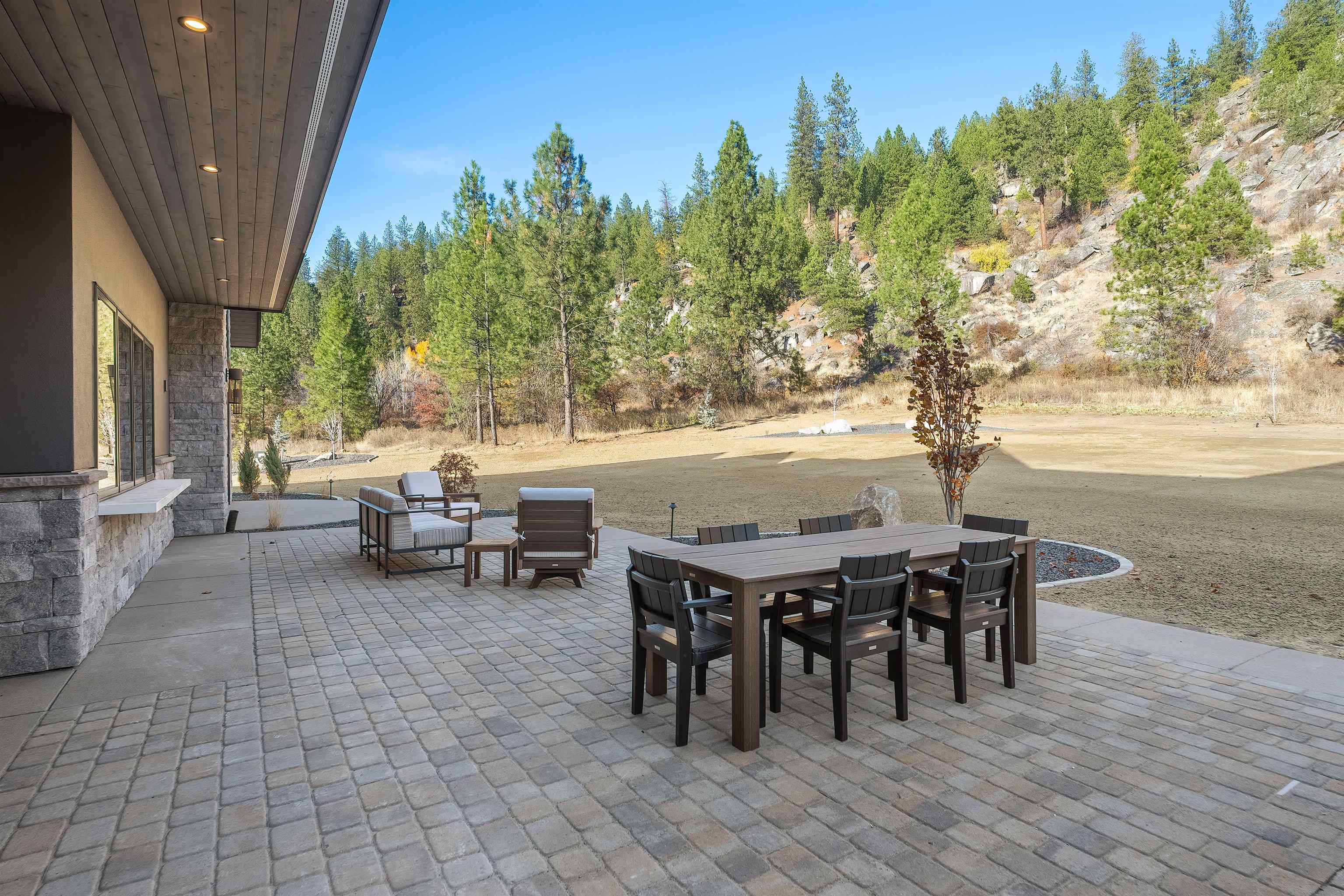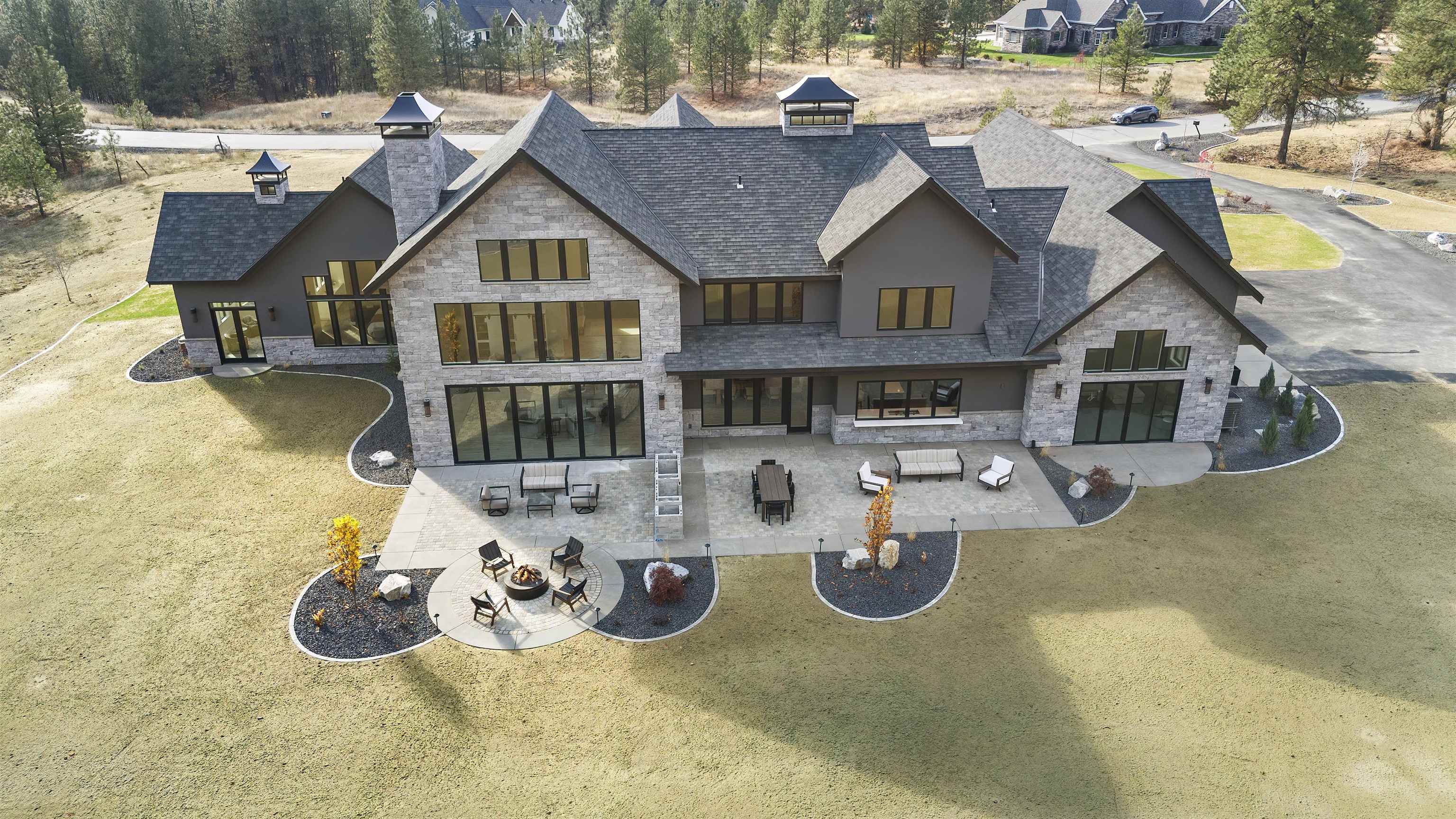 No detail has been overlooked in this luxurious modern masterpiece designed to showcase the exceptional mountain backdrop. Located on 20 spectacular acres behind the gates in exclusive Riverbluff Estates, the location is private + serene, yet only minutes from shopping, restaurants, coveted St. George's School, Little Spokane River Natural Area + Kalispel Golf + Country Club. This executive custom home features soaring ceilings, expansive spaces, a jaw-dropping Pivot entry door, a culinary dream kitchen w/butler's pantry + an opulent primary suite guaranteed to make you feel as though you are waking up in a lavish private resort every day of your life. Features include top-of-the-line appliances, 14' kitchen island, cozy wine tasting lounge, bedrooms w/walk-in closets + ensuite baths, home office w/custom built-ins + a spacious family room. Outside, you'll love the extensive paver patio w/built-in BBQ, custom accent lighting + gas fire pit. Ask about seller financing!
