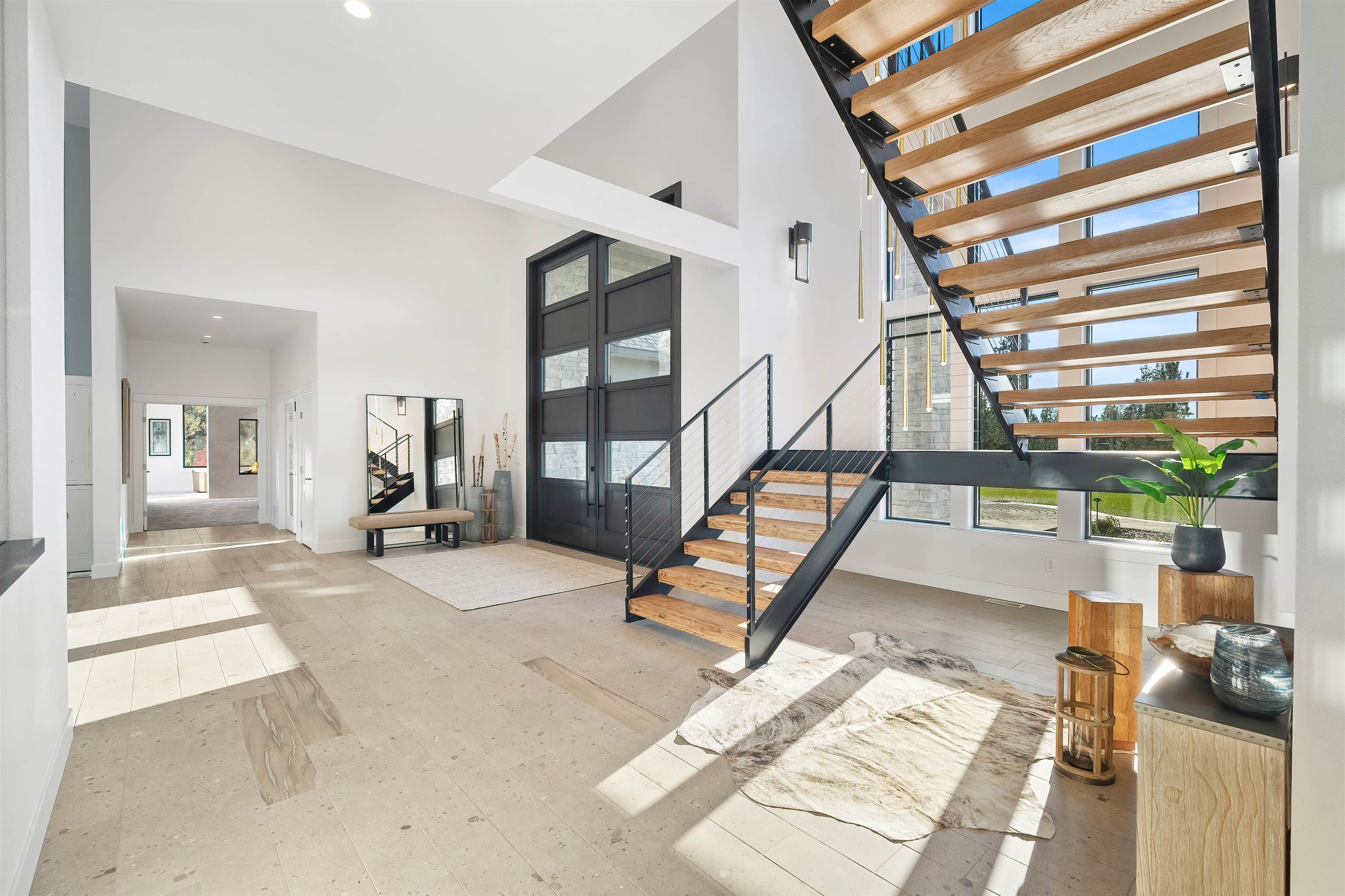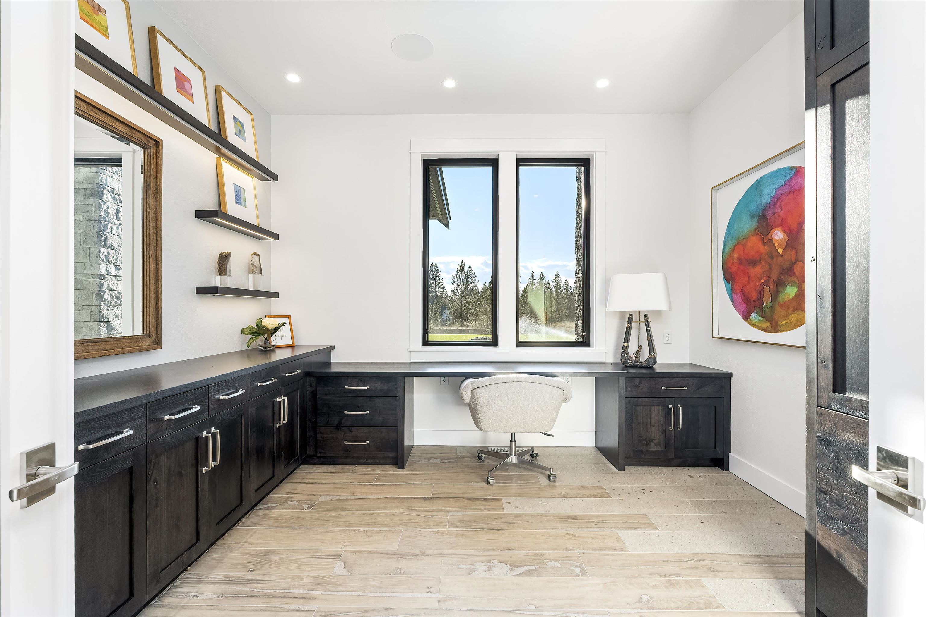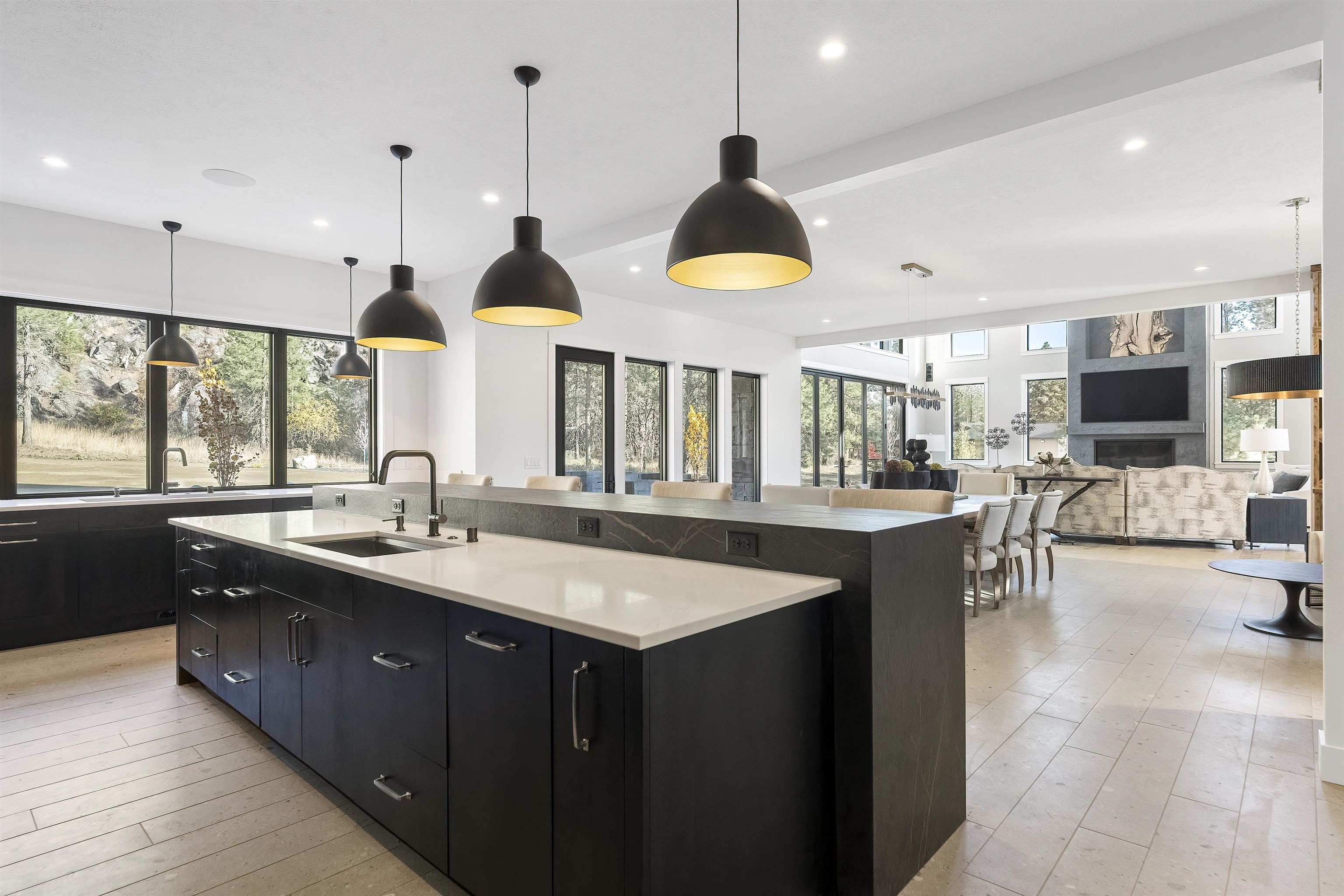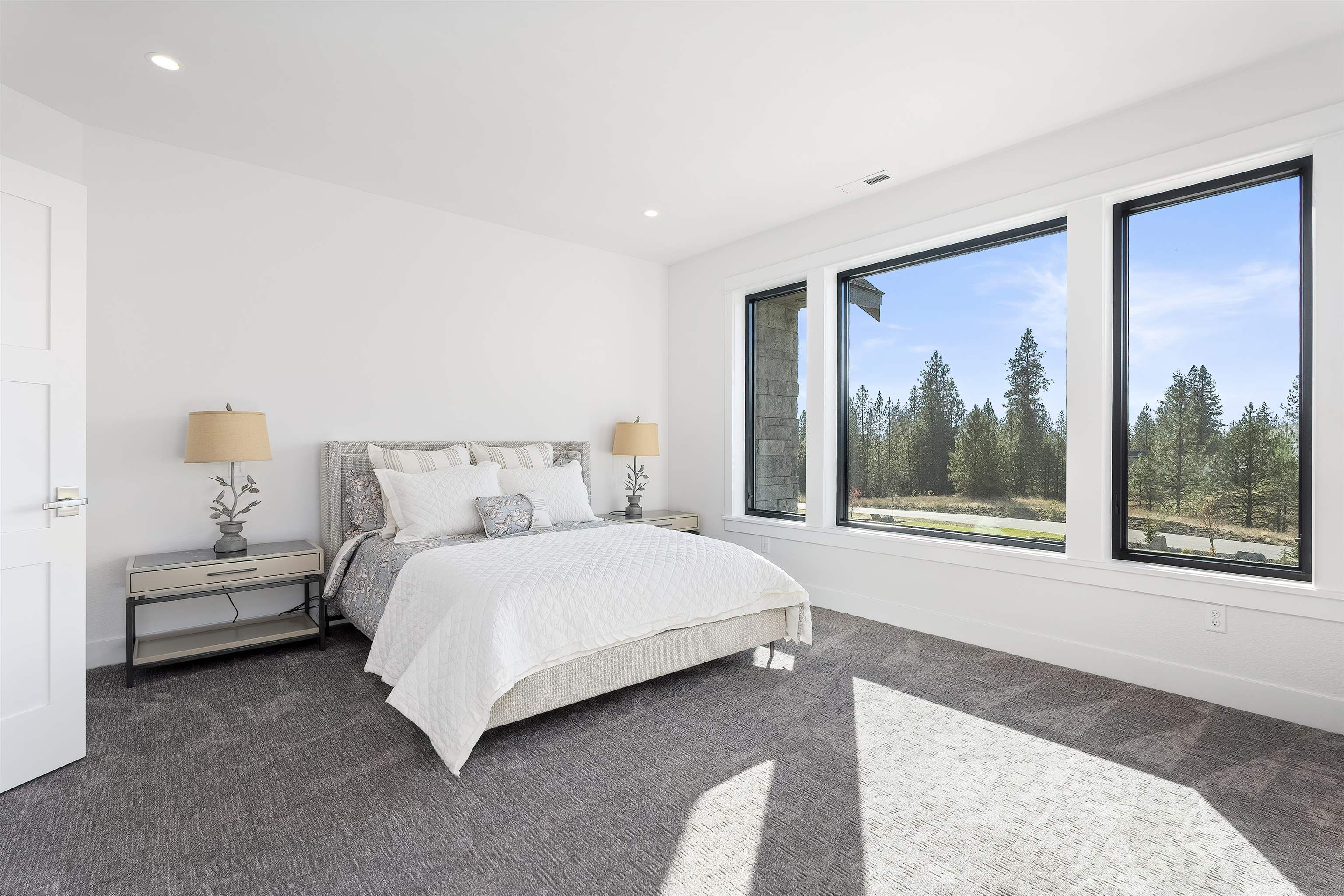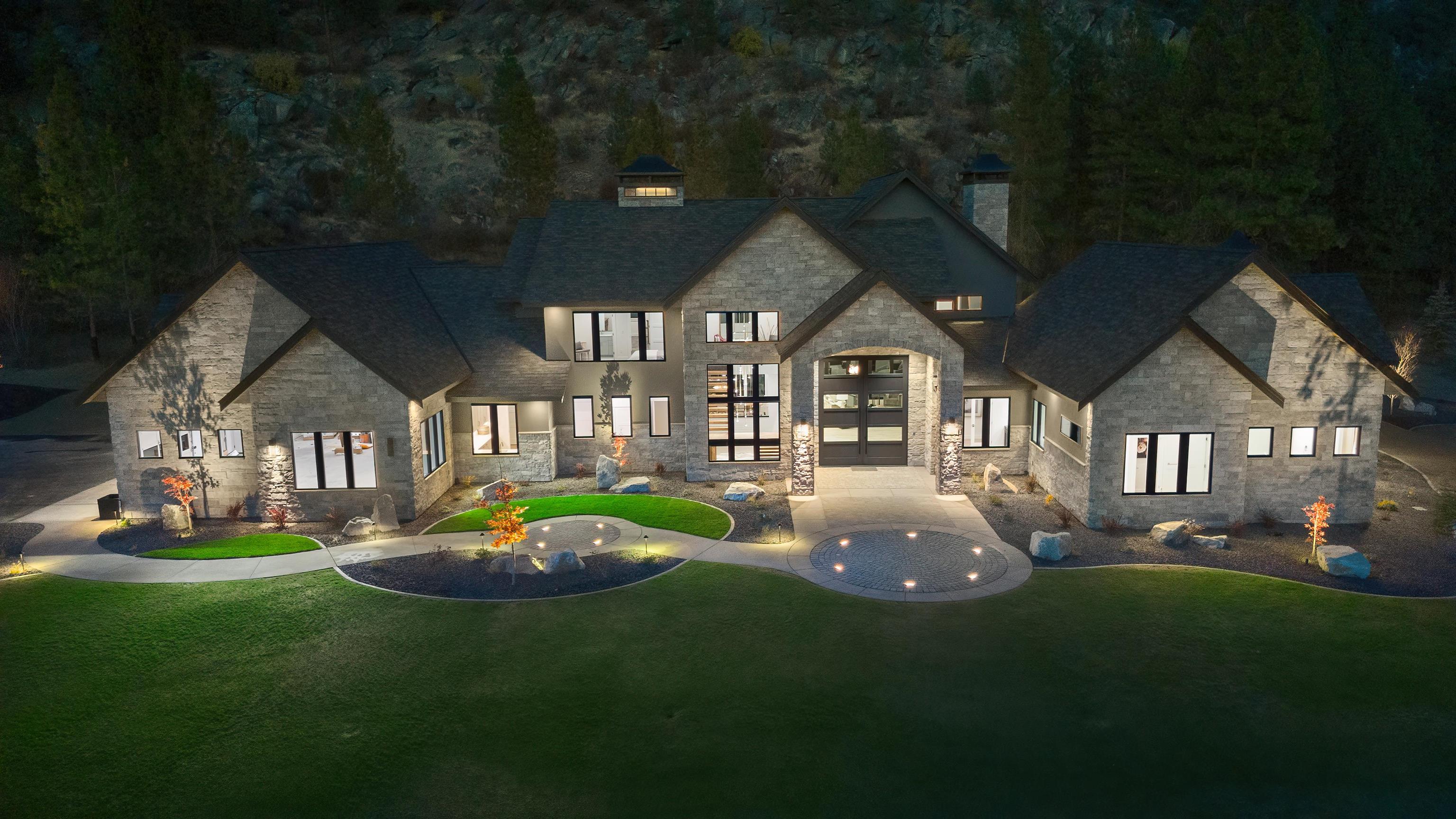 No detail has been overlooked in this luxurious modern masterpiece designed to showcase the exceptional mountain backdrop. Located on 20 spectacular acres behind the gates in exclusive Riverbluff Estates, the location is private + serene, yet only minutes from shopping, restaurants, coveted St. George's School, Little Spokane River Natural Area + Kalispel Golf + Country Club. This executive custom home features soaring ceilings, expansive spaces, a jaw-dropping Pivot entry door, a culinary dream kitchen w/butler's pantry + an opulent primary suite guaranteed to make you feel as though you are waking up in a lavish private resort every day of your life. Features include top-of-the-line appliances, 14' kitchen island, cozy wine tasting lounge, bedrooms w/walk-in closets + ensuite baths, home office w/custom built-ins + a spacious family room. Outside, you'll love the extensive paver patio w/built-in BBQ, custom accent lighting + gas fire pit. Ask about seller financing!