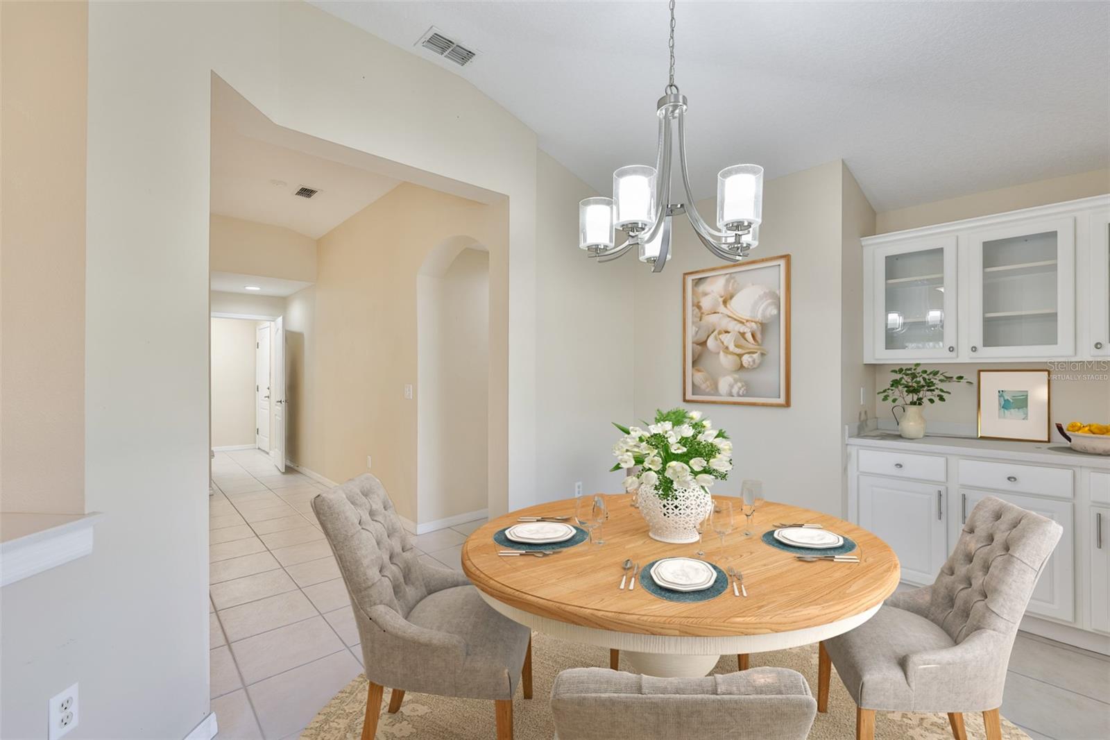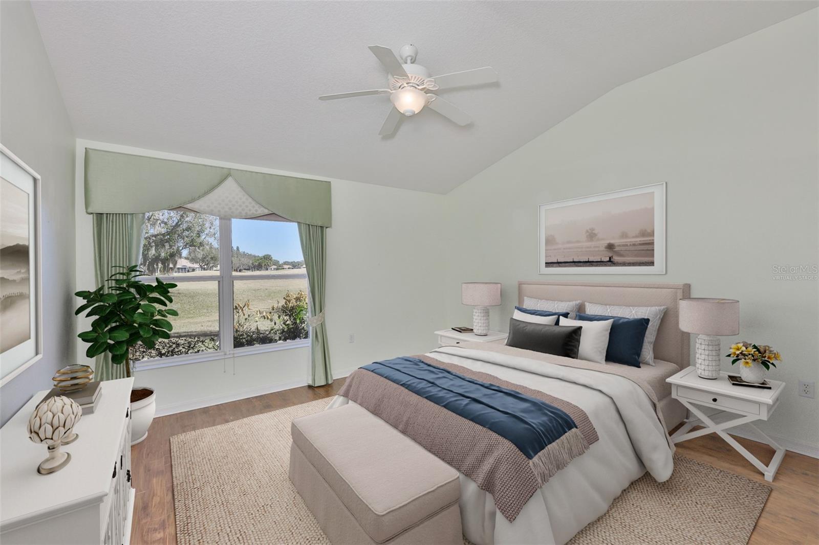 One or more photo(s) has been virtually staged. Welcome to your Florida dream lifestyle at 2119 Grantham Greens Dr, where maintenance-free villa living meets resort-style amenities in the heart of Sun City Center's premier Kings Point community. This immaculate 2-bedroom, 2-bathroom home offers 1,450 square feet of thoughtfully designed single-story living with stunning golf course views from your private screened lanai. WORRY-FREE OWNERSHIP This home has been meticulously maintained with major systems recently updated: 2024 roof replacement, 2025 water heater, 2021 HVAC, and fresh exterior paint completed by the association in January 2026. Added conveniences include 2025 gutters and energy-efficient natural gas service. Simply move in and start enjoying the Florida lifestyle you've been dreaming about. ELEGANT INTERIOR Step inside to discover vaulted ceilings that create an impressive sense of space and light throughout the open floor plan. The kitchen features a convenient pantry with pull-out shelving, pristine white cabinetry, and all appliances convey including the washer and dryer. Wood-look laminate flooring flows seamlessly through the main living areas, while ceiling fans in every room ensure year-round comfort. The spacious primary suite boasts a beautifully updated en-suite bathroom and walk-in closet with custom built-in organizational systems. The second bedroom offers flexibility as a guest room, office, or hobby space. INDOOR-OUTDOOR LIVING Your approximately 20'x8' screened lanai provides the perfect vantage point to watch golfers navigate the course while you sip your morning coffee or enjoy spectacular Florida sunsets. This is outdoor living at its finest. PRACTICAL CONVENIENCES The oversized 2-car garage includes a utility sink for projects and hobbies. Every detail has been considered for comfortable, convenient living. KINGS POINT LIFESTYLE Your $754 monthly HOA fee is one of the best values in Sun City Center, covering an impressive array of services and amenities including Spectrum cable and internet, lawn maintenance and landscaping, exterior pest control, community pool and spa, state-of-the-art fitness center, tennis and pickleball courts, clubhouse with planned social activities, golf course access with membership options available, 24-hour manned security gate, woodworking and craft studios, billiards and card rooms, and catering kitchen for events. You'll literally only pay your electric bill - everything else is covered! PET-FRIENDLY This section of Kings Point welcomes up to two pets, so bring your furry companions along to enjoy the Florida sunshine. LOCATION, LOCATION Sun City Center offers the perfect combination of peaceful retirement living with easy access to Tampa Bay beaches, shopping, dining, world-class healthcare, and Tampa International Airport. This turnkey villa represents exceptional value in one of Florida's most desirable 55+ communities. Don't miss this opportunity to own a meticulously maintained home where every day feels like vacation.