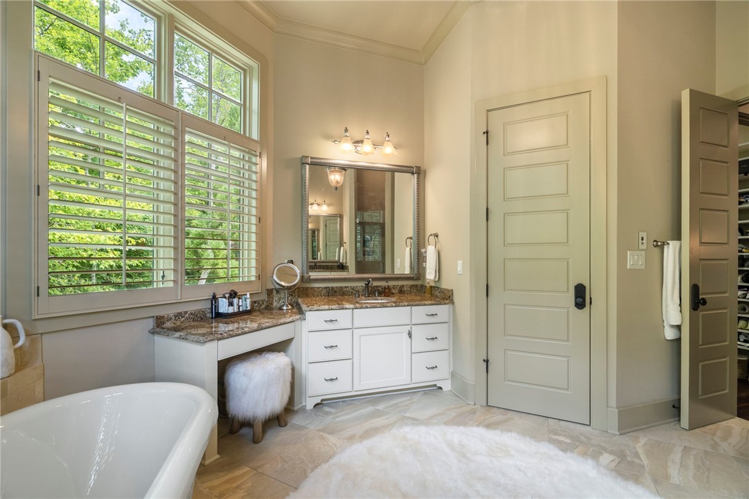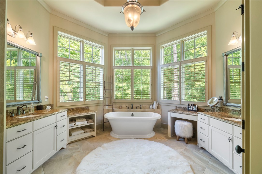 Interior Features : WetBar, CathedralCeilings, DualSinks, Fireplace, GraniteCounters, GardenTubRomanTub, HighCeilings, BathInPrimaryBedroom, MainLevelPrimary, SmoothCeilings, SeparateShower