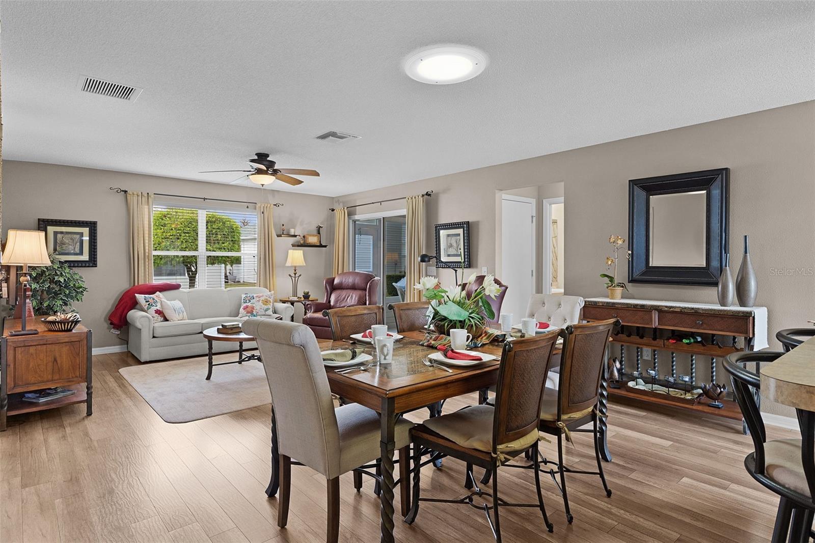 Pride of ownership shines throughout this pristine 2-bedroom, 2-bathroom Laredo in the Village of Duval. Perfectly positioned in the heart of all the amenities, this 2006-built showstopper sits in the coveted area between Hwy. 466 & 466A (aka “Between the 6’s) – conveniently located half a mile to Seabreeze Recreational Center to enjoy club activities, outdoor sports, pickleball, fitness center, club activities, community, family & sports pools, surrounded by executive golf courses, 1.5 miles to Havana Country Club & Championship Courses, quick and easy golf cart rides to Lake Sumter Landing and Brownwood Paddock Market Squares, restaurants, shopping, and every world-class amenity The Villages Community has to offer.