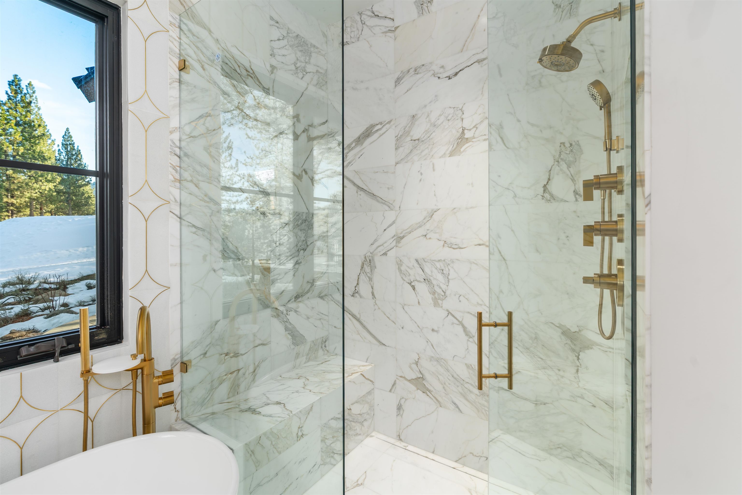 Just off the 18th tee box, Par 5 is a refined mountain retreat where architecture, craftsmanship, and setting align with quiet confidence. Designed by Sandbox Studio, the home balances modern alpine lines with warm, livable scale—clean rooflines, intentional sightlines, and a seamless relationship to the surrounding forest and fairway. Interiors by Moxie Interiors elevate the experience with a curated mix of texture and tone, pairing natural materials with tailored details throughout. Custom Buster + Punch hardware adds a subtle edge—industrial precision meeting mountain elegance—while thoughtful lighting and finishes create a cohesive, design-forward atmosphere. The floor plan is equally considered: a dedicated office for focused work, temperature-controlled wine storage for collectors, and a recreation room designed for effortless entertaining after a day on the course or the slopes. Each space feels purposeful yet relaxed, ideal for both full-time living and refined retreats. Located within Lahontan, Par 5 offers immediate proximity to championship golf, miles of trails, and the club lifestyle Lahontan is known for—privacy, architecture, and access, all in one of Tahoe’s most respected communities.