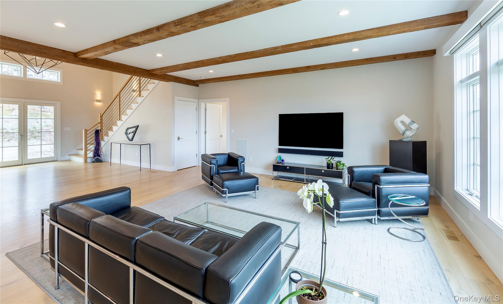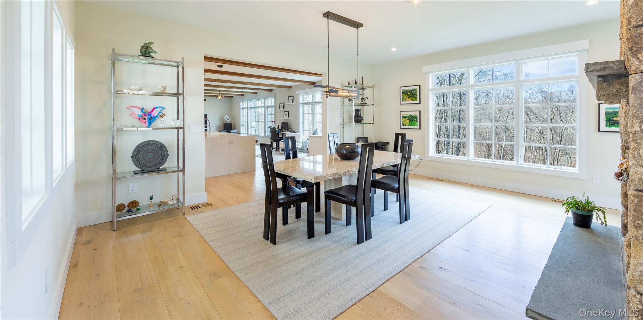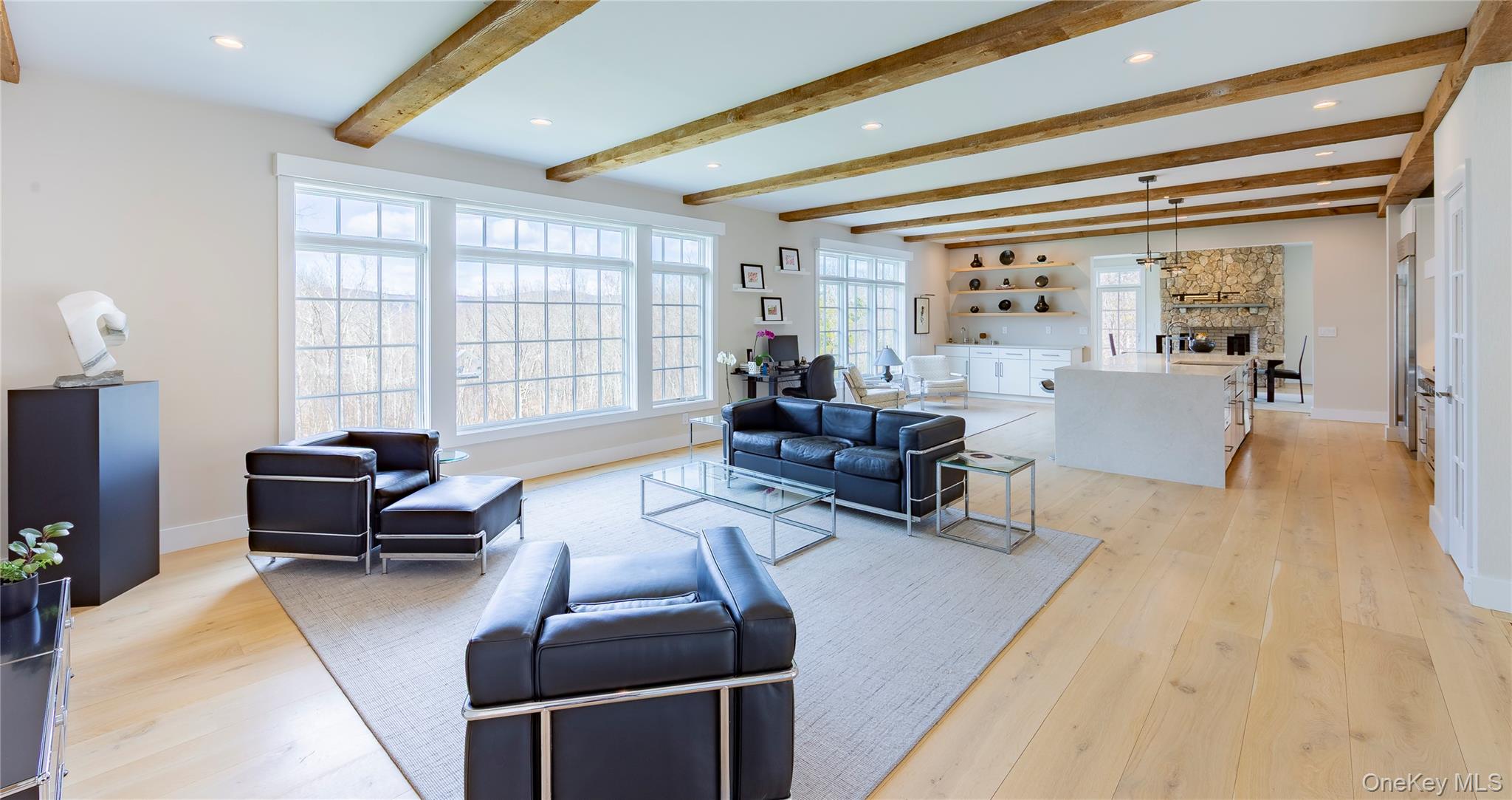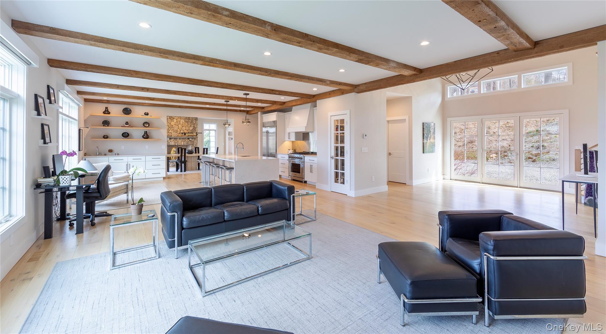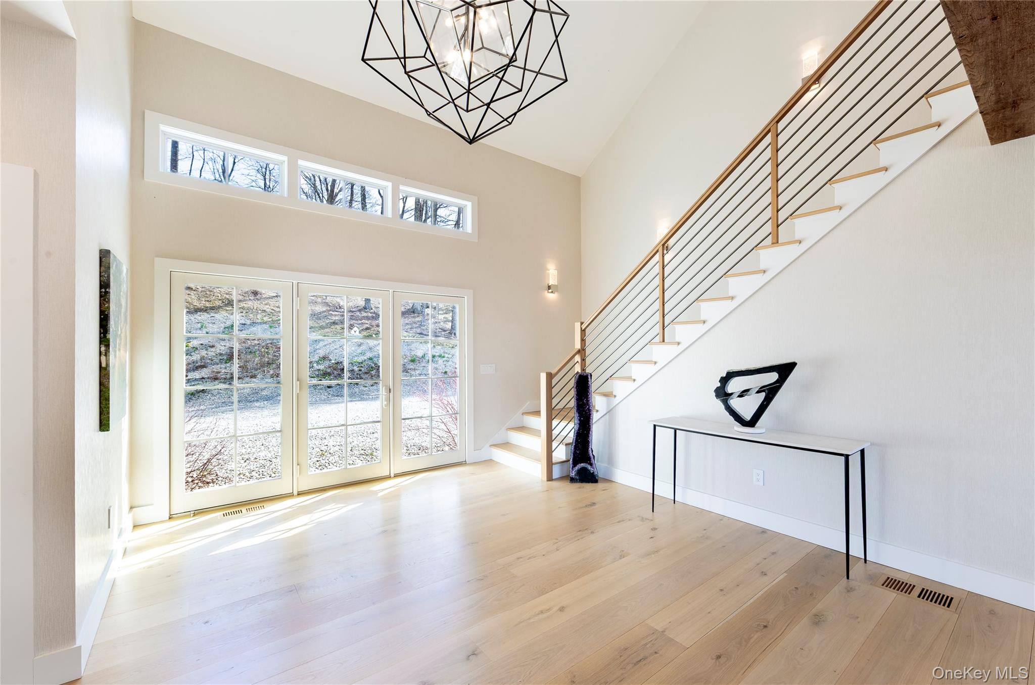 A striking blend of modern design and timeless barn-inspired architecture, this exceptional 4,250 SF home sits privately on 12.77 acres and offers a rare sense of space, light, and tranquility. Built in 2022, the residence still feels brand new, with 5 bedrooms, 4 full baths, and 1 half bath over 3 levels, including a legal accessory apartment. A dramatic two-story foyer sets the tone, showcasing a split staircase with sleek stainless-steel cabling and an open balcony above. The main level is defined by soaring 9-foot ceilings, reclaimed wood beams, wide-plank white oak floors, and expansive windows and doors that invite natural light into every corner. The open-concept design seamlessly connects the great room to a chef’s kitchen outfitted with premium stainless-steel appliances, a waterfall island, and a bright breakfast area. The adjoining dining room, anchored by a floor-to-ceiling stone fireplace and access to a side patio, offers flexibility as either a formal gathering space or a relaxed family room. A music room with a tray ceiling provides an ideal setting for a home office or formal dining space. The first-floor primary suite is a private retreat, complete with dual walk-in closets and a spa-like bath featuring a soaking tub and walk-in shower. A powder room and an expansive mudroom with custom cabinetry connect effortlessly to the attached two-car garage, crowned with a classic cupola. Upstairs, the second level continues to impress with a well-balanced layout. Bedroom #2 enjoys an ensuite bath, while bedrooms #3 and #4 share a full hall bath. A versatile workspace or recreation area with custom cabinetry adds further flexibility, complemented by a dedicated laundry room, storage room, and a charming cupola that draws in sunlight from all directions. The walk-out basement features 10-foot ceilings with both finished and unfinished space. In 2023, a beautifully designed 750 SF legal accessory apartment was added, offering its own private entrance and parking area. This self-contained space includes a living room, full kitchen, bedroom #5, full bath, dual closets, and additional storage. Designed with efficiency and sustainability in mind, the home is equipped with top-tier mechanical systems, a full-house generator, and discreet solar panels that significantly reduce energy costs. Outdoors, a gentle stream borders the western edge, while surrounding conservation land enhances privacy and preserves the natural setting. Seasonal mountain views and stunning western sunsets provide a picturesque backdrop. Bluestone patios and walkways create inviting outdoor living spaces, complemented by a designated pool site and a fenced raised-bed garden with irrigation. The landscaping, thoughtfully designed by GardenLarge, embraces a naturalistic landscaping approach, replacing invasive species without the use of chemicals, with hundreds of native plantings that support local wildlife and pollination. Upland Pastures Farm is a small country subdivision of custom homes on large lots with no further subdivision. Access to 2 additional protected properties of Open Space (pasture & woodlands) totaling over 77 acres (Northwest Connecticut Land Conservancy - CT's largest Land Trust) abuts miles of walking, riding, hiking trails. A short walk to the White Silo Farm, a small specialty winery that produces fresh fruit and grapes, with wines made from the fruit grown at the farm. Wine tastings and old dairy barn showcasing local artists. 1 minute to quaint Town Center, community tennis & pickle ball courts, basketball court, ball field and short walk to town pavilion, beach, boat slips and canoe/kayak racks on Candlewood Lake. 6 minutes to the Audubon Society Land Trust (835 acre bird sanctuary). 7 minutes to the River Oaks Golf Club. 20 minutes to Metro North Train Station. Just 5 minutes to the NY line and 90 minutes to NYC. Potential for Guest House. Room for barn/horses/tennis/cited for pool.