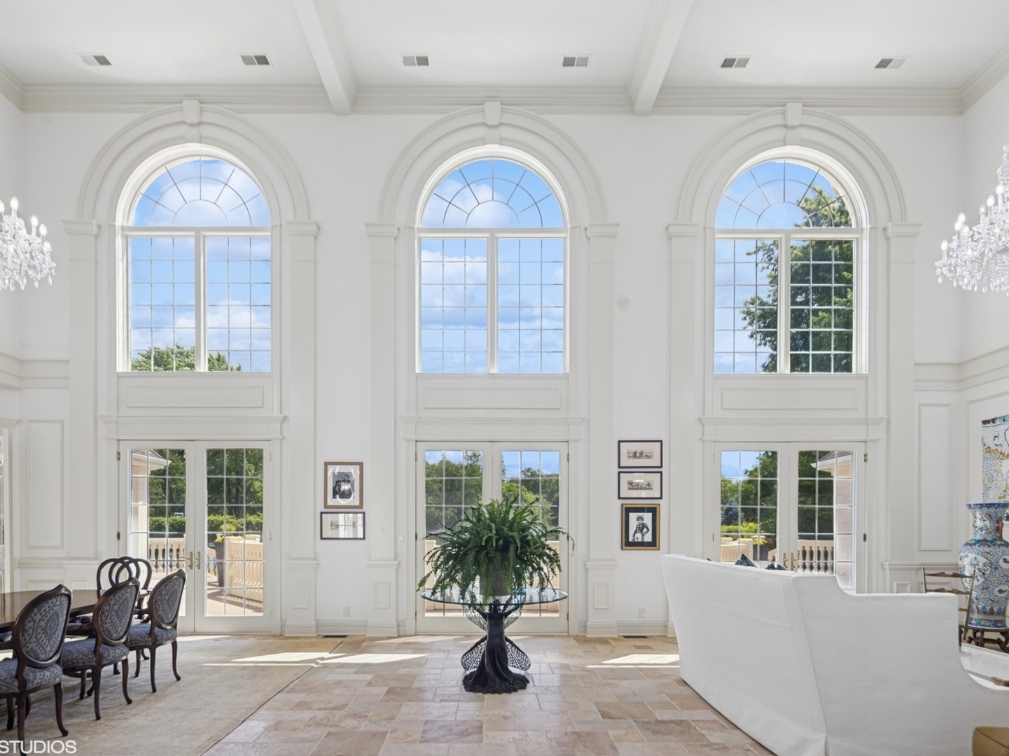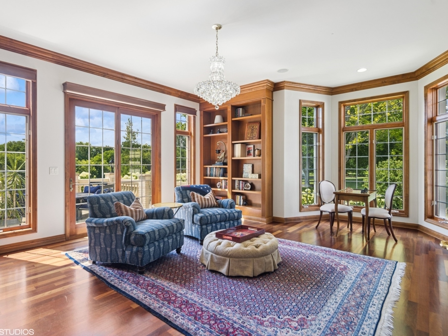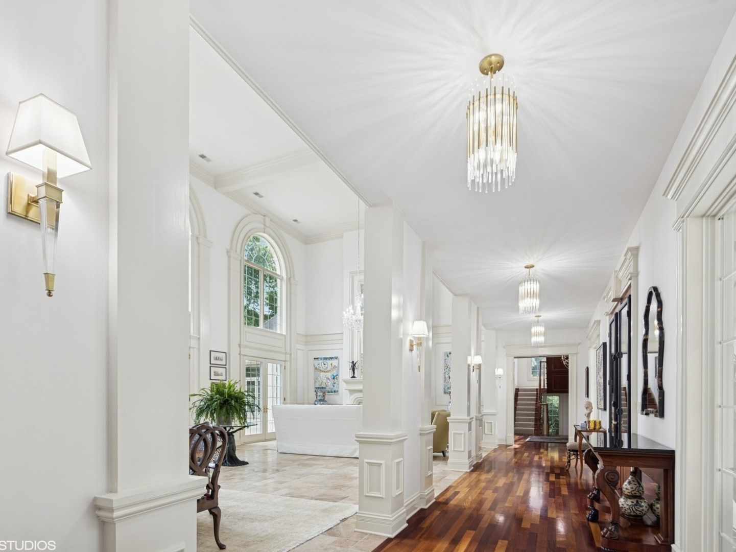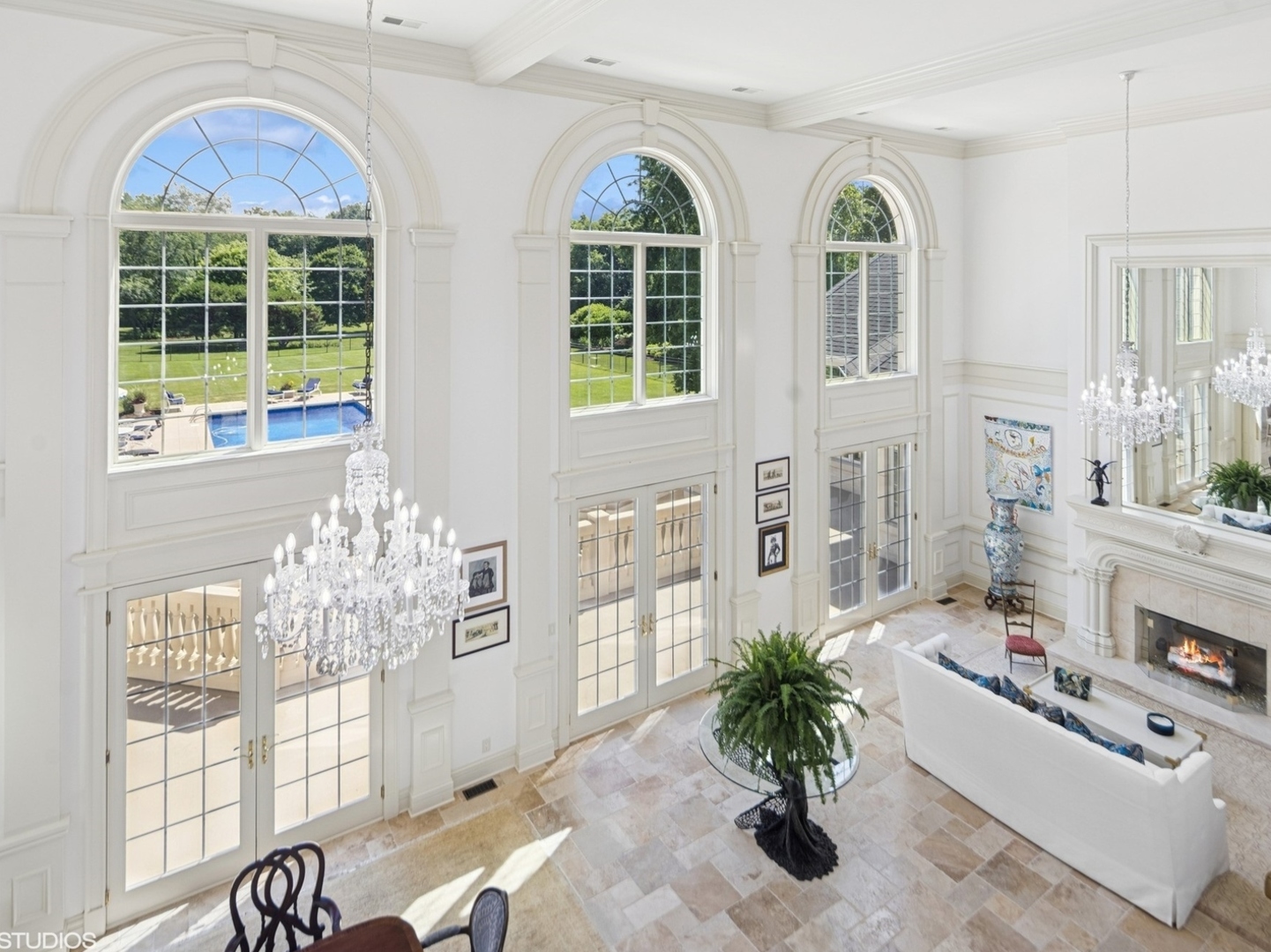 An Architectural Masterpiece in the heart of St. Charles - Step into glamour and sophistication at the illustrious Masco Estate-an exquisite residence envisioned by renowned architect, Scholz Design, and masterfully constructed in 2003, this estate is perfectly positioned just 35 miles west of Chicago, this stately sanctuary is nestled in the storybook landscape of St. Charles, Illinois. Approach via a secluded private lane, crossing a picturesque bridge over the tranquil Ferson Creek, and pass through elegant wrought iron gates into a world of splendor. Set on over 9 lush acres of manicured grounds and flourishing gardens, this distinguished Burr Road estate presents an unmatched lifestyle offering both grandeur and serenity. At the heart of the property lies the principal residence, encompassing over 12,000 square feet of refined living across three impeccably finished levels, including a full walkout lower level. This estate artfully blends old-world craftsmanship with modern luxury. Upon entry, be captivated by a 22-foot soaring great room, framed by Palladian windows, adorned with two sparkling crystal chandeliers, and anchored by a stately fireplace set in rich marble. Gorgeous travertine flooring and woods flows throughout, guiding you into the bespoke gourmet kitchen-a chef's haven boasting extensive maple cabinetry, high-end appliances, gleaming granite countertops, and a sunlit breakfast nook with panoramic views. Architectural brilliance continues in the rotunda-style turret, showcasing a cozy fireplace and terrace access-perfect for intimate gatherings or quiet reflection. The lavish first-floor primary suite is a private retreat, complete with an opulent ensuite, sitting rooms, a wet bar, private patio, and a dedicated staircase descending to a private gym. The adjacent executive office/library is a study in refinement, featuring custom millwork, fireplace, and it's own tranquil and private patio overlooking the expansive side lawn-an ideal blend of form and function. Additional amenities include dual laundry rooms on the main and lower levels for effortless convenience. Upstairs, new wool carpeting leads to four generously proportioned ensuite bedrooms, each offering privacy and elegant finishes. An expansive covered veranda on this level provides sweeping views and a perfect setting for entertaining. The walkout lower level is a destination in itself-designed for hosting and relaxation with a handcrafted Irish-imported oak bar, climate-controlled wine cellar, recreation spaces, gym, vault room, two fireplaces, and a full bath. Outdoors, this estate is equally impressive. Lounge by the resort-style pool and hot tub (with new liner and cover in 2023), entertain on the two-tiered stone terrace and loggia, or gather around the cozy fire pit. For the sports enthusiast, enjoy tennis, basketball, and pickleball courts-resurfaced in 2025 for basketball, pickleball and tennis -- all within your own private grounds. A highlight of the estate is the remarkable 2,450-square-foot Bank Barn, ideal for a home business, studio, or future guesthouse. Once a single family home & office (has it's own address), this barn has five bedrooms, three bathrooms and two kitchens. Featuring 24-foot vaulted ceilings, a dramatic balcony with sunset views, walkout lower level, and an attached garage, the barn is a separate three-car garage with epoxy flooring, AC, and a finished loft. Perfectly positioned with two private entrances, this one-of-a-kind estate offers close proximity to PGA event courses such as Medinah Country Club, St. Charles Country Club, The Hawk Country Club, Dunham Woods Riding Club, Leroy Oaks Forest Preserve, the Randall Road corridor, and the private DuPage Airport-all within the acclaimed St. Charles School District 303. This is more than a home-it's a legacy property and a rare opportunity to own one of St. Charles' most iconic estates. Call to schedule your private showing today.