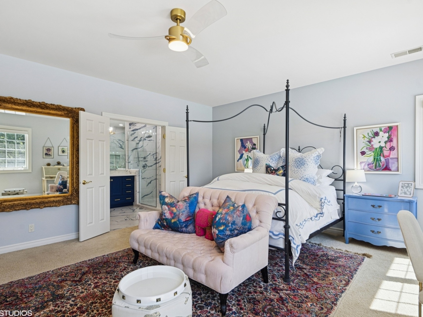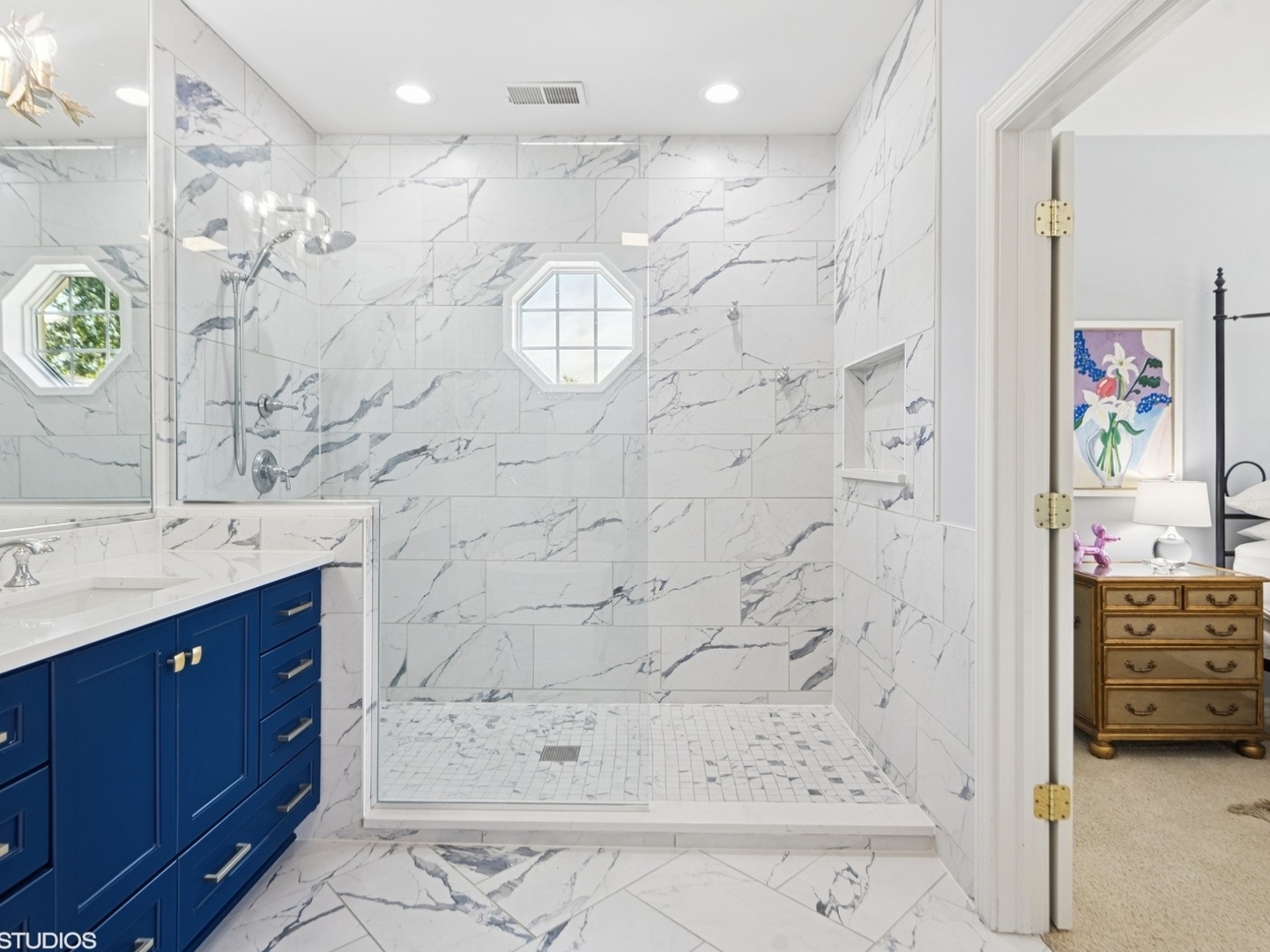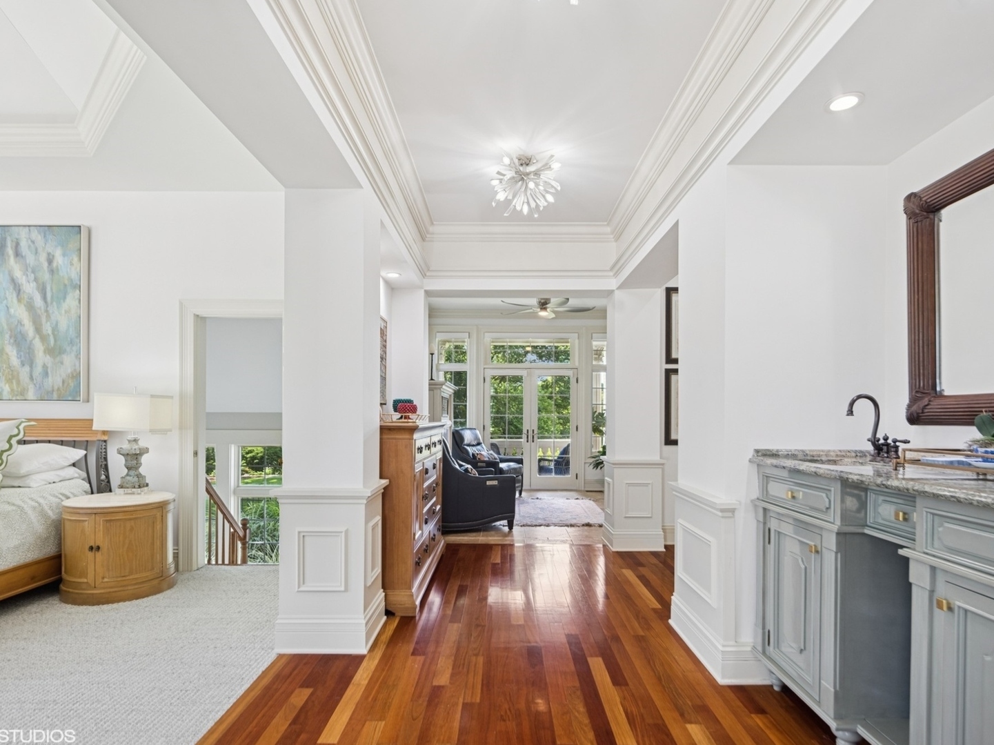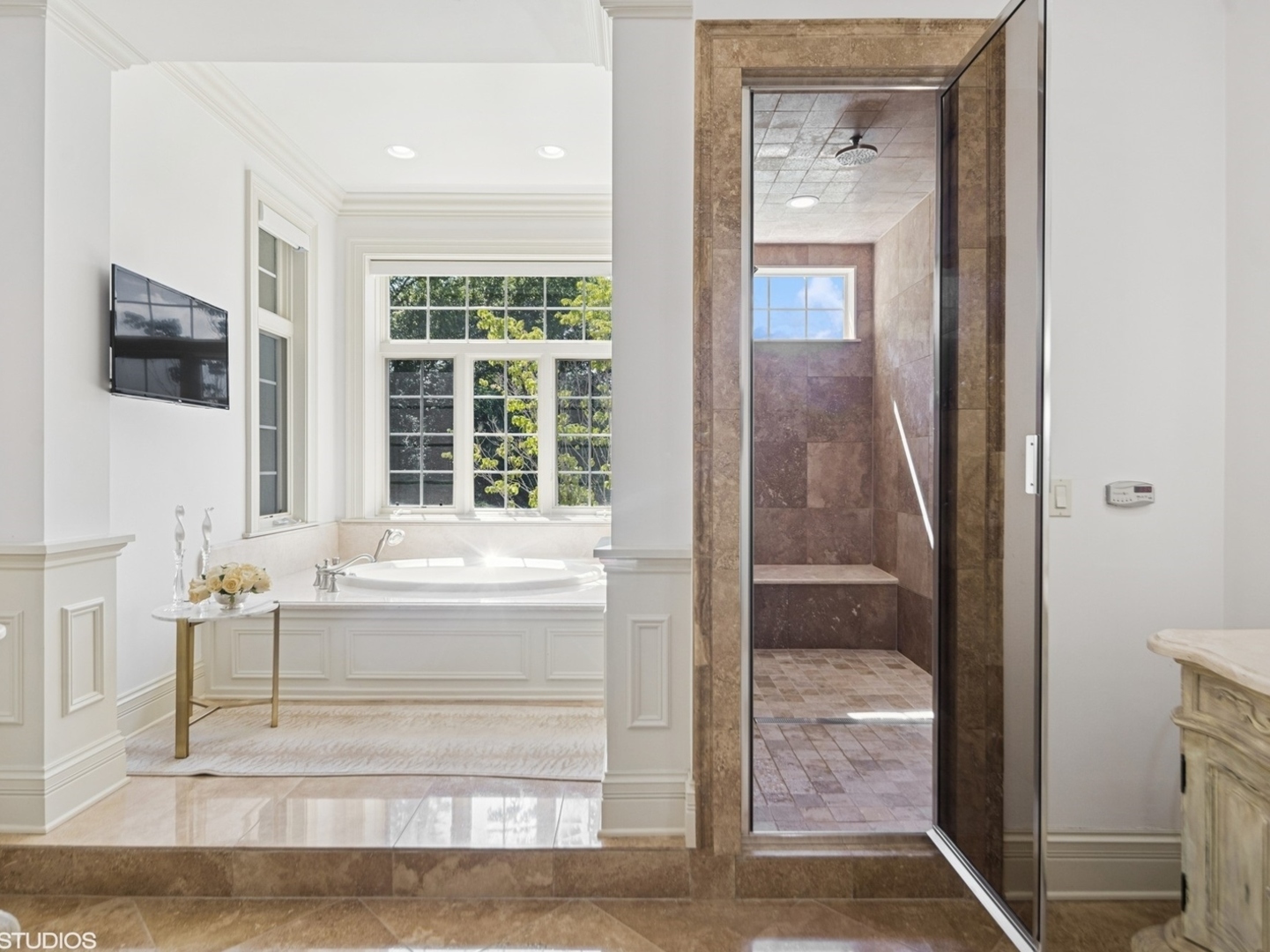 An Architectural Masterpiece in the heart of St. Charles - Step into glamour and sophistication at the illustrious Masco Estate-an exquisite residence envisioned by renowned architect, Scholz Design, and masterfully constructed in 2003, this estate is perfectly positioned just 35 miles west of Chicago, this stately sanctuary is nestled in the storybook landscape of St. Charles, Illinois. Approach via a secluded private lane, crossing a picturesque bridge over the tranquil Ferson Creek, and pass through elegant wrought iron gates into a world of splendor. Set on over 9 lush acres of manicured grounds and flourishing gardens, this distinguished Burr Road estate presents an unmatched lifestyle offering both grandeur and serenity. At the heart of the property lies the principal residence, encompassing over 12,000 square feet of refined living across three impeccably finished levels, including a full walkout lower level. This estate artfully blends old-world craftsmanship with modern luxury. Upon entry, be captivated by a 22-foot soaring great room, framed by Palladian windows, adorned with two sparkling crystal chandeliers, and anchored by a stately fireplace set in rich marble. Gorgeous travertine flooring and woods flows throughout, guiding you into the bespoke gourmet kitchen-a chef's haven boasting extensive maple cabinetry, high-end appliances, gleaming granite countertops, and a sunlit breakfast nook with panoramic views. Architectural brilliance continues in the rotunda-style turret, showcasing a cozy fireplace and terrace access-perfect for intimate gatherings or quiet reflection. The lavish first-floor primary suite is a private retreat, complete with an opulent ensuite, sitting rooms, a wet bar, private patio, and a dedicated staircase descending to a private gym. The adjacent executive office/library is a study in refinement, featuring custom millwork, fireplace, and it's own tranquil and private patio overlooking the expansive side lawn-an ideal blend of form and function. Additional amenities include dual laundry rooms on the main and lower levels for effortless convenience. Upstairs, new wool carpeting leads to four generously proportioned ensuite bedrooms, each offering privacy and elegant finishes. An expansive covered veranda on this level provides sweeping views and a perfect setting for entertaining. The walkout lower level is a destination in itself-designed for hosting and relaxation with a handcrafted Irish-imported oak bar, climate-controlled wine cellar, recreation spaces, gym, vault room, two fireplaces, and a full bath. Outdoors, this estate is equally impressive. Lounge by the resort-style pool and hot tub (with new liner and cover in 2023), entertain on the two-tiered stone terrace and loggia, or gather around the cozy fire pit. For the sports enthusiast, enjoy tennis, basketball, and pickleball courts-resurfaced in 2025 for basketball, pickleball and tennis -- all within your own private grounds. A highlight of the estate is the remarkable 2,450-square-foot Bank Barn, ideal for a home business, studio, or future guesthouse. Once a single family home & office (has it's own address), this barn has five bedrooms, three bathrooms and two kitchens. Featuring 24-foot vaulted ceilings, a dramatic balcony with sunset views, walkout lower level, and an attached garage, the barn is a separate three-car garage with epoxy flooring, AC, and a finished loft. Perfectly positioned with two private entrances, this one-of-a-kind estate offers close proximity to PGA event courses such as Medinah Country Club, St. Charles Country Club, The Hawk Country Club, Dunham Woods Riding Club, Leroy Oaks Forest Preserve, the Randall Road corridor, and the private DuPage Airport-all within the acclaimed St. Charles School District 303. This is more than a home-it's a legacy property and a rare opportunity to own one of St. Charles' most iconic estates. Call to schedule your private showing today.