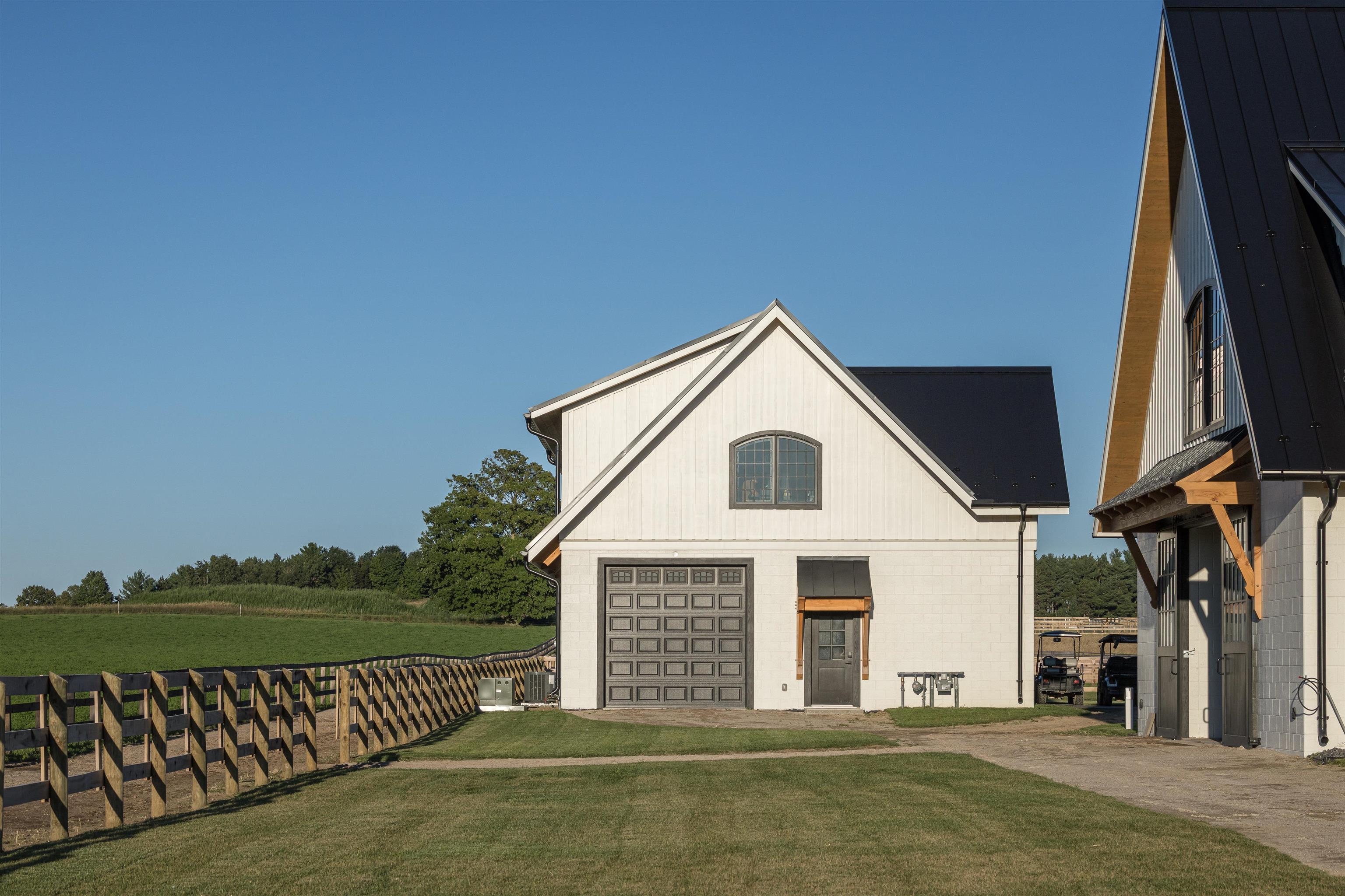 Experience world-class equestrian living in Grand Prix Village North, Northern Michigan’s premier gated equestrian community ideally situated adjacent to Traverse City Horse Shows. This recently completed 10,858 sq ft, 22-stall custom barnâ€"expertly designed and built by B&D Buildersâ€"offers an unparalleled combination of luxury, function, and prime location. Positioned on a high-visibility front lot, the property provides direct access to Flintfield's Horse Park via a private bridle path, while maintaining the privacy and security of a gated setting. Crafted with exquisite timber frame construction that reflects old-world craftsmanship, the barn includes 22 stalls, four wash stalls, four grooming stalls, a spacious tack room, feed room, hay storage, laundry room, bathroom, and private office. Kalwall Skylights and overhead fans fill the space with natural light and ensure exceptional ventilation, keeping the barn cool and comfortable even on the warmest summer days. A separate three-car garage features a well-appointed four-bedroom, two-bathroom apartment aboveâ€"ideal for staff housing, trainers, or guest accommodations. The fully fenced and professionally landscaped grounds are thoughtfully designed for performance and care, highlighted by a 185' x 175' GGT riding arena with an advanced ebb n flow watering system and four 60' x 60' fenced paddocks. Designed by equestrians for equestrians, Grand Prix Village North offers luxury barns and homes, paved roads, and a private network of bridle paths connecting directly to the showgroundsâ€"supporting a seamless, premier equestrian lifestyle. Whether you are a competitor, trainer, or equestrian enthusiast, this is a rare opportunity to own a top-tier facility in one of Michigan’s most sought-after equestrian communities.