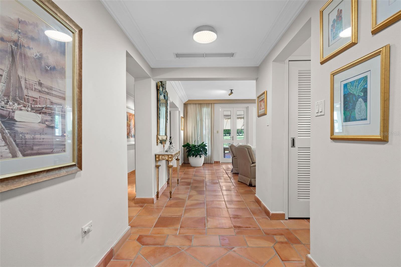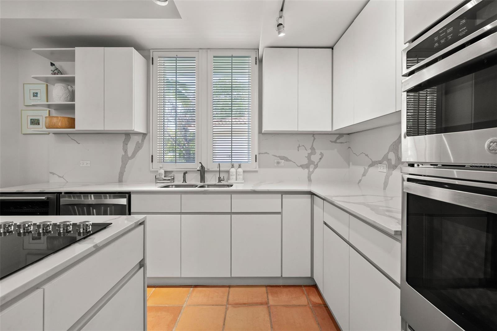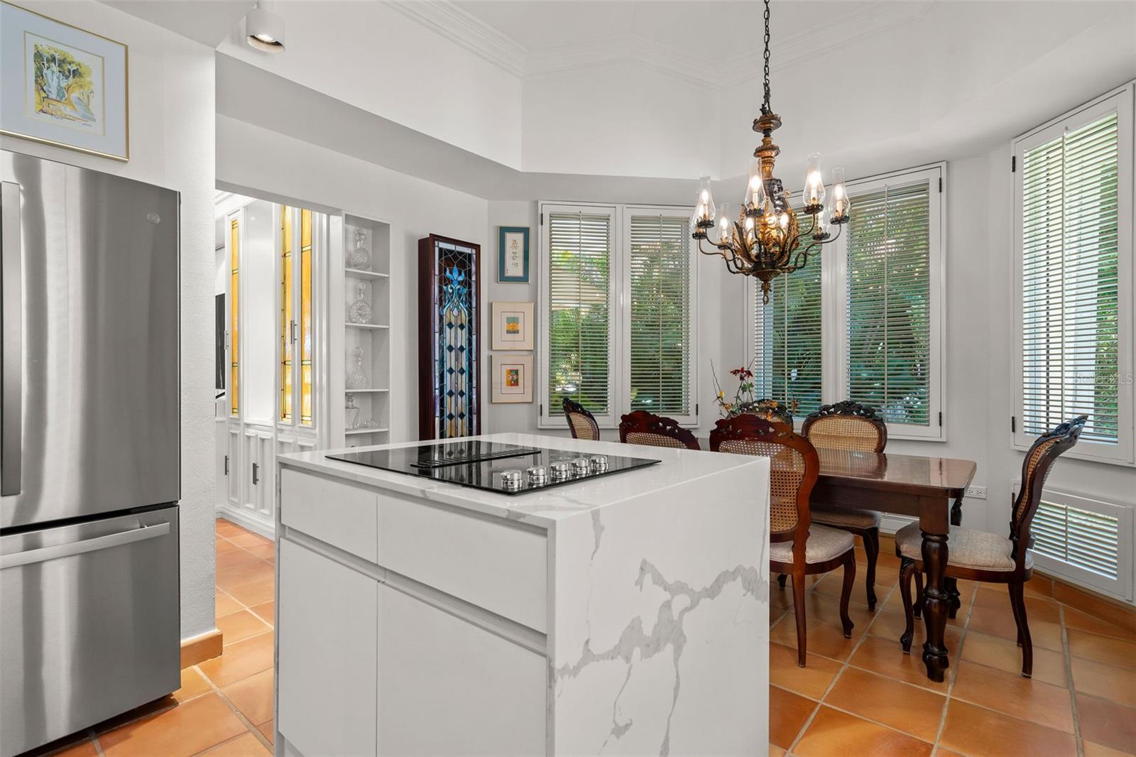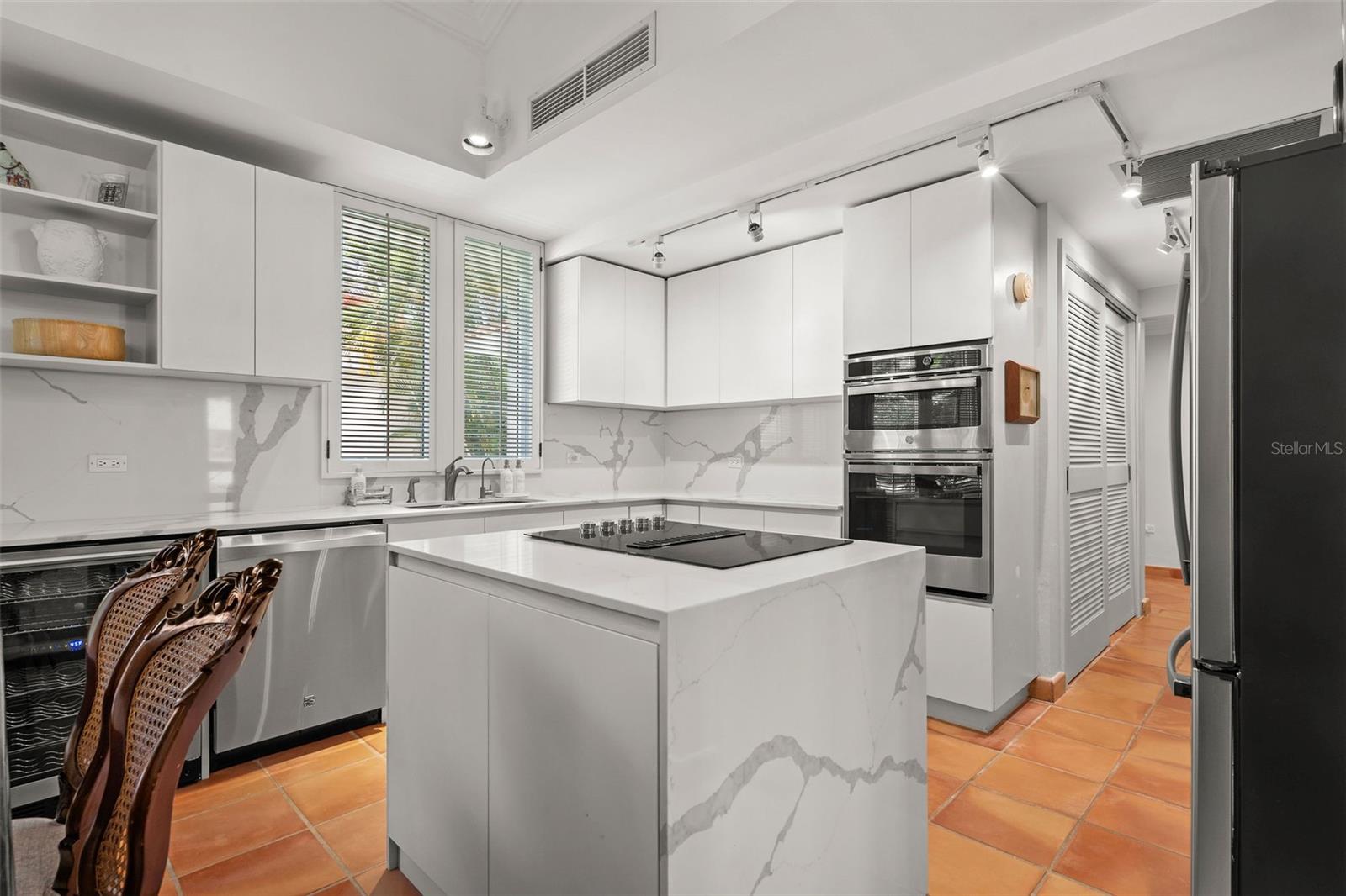 The recently renovated kitchen is a chef’s dream, featuring stainless steel appliances, a center island with built-in storage, and stylish finishes. Additional features include space to store a golf cart, two designated parking spots directly in front of the unit, a 500-gallon water cistern, water softener system, electric shutters, an 11 kW backup generator, and 14 batteries that can power the home for uninterrupted comfort.