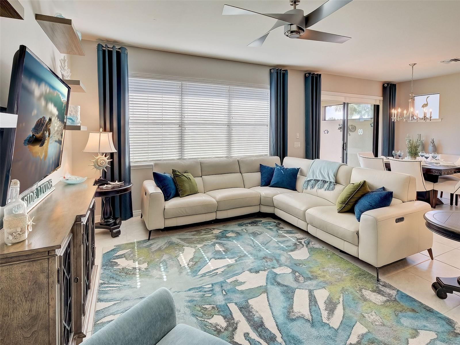 This move-in-ready home features a new HVAC system, upgraded porcelain tile flooring, and smooth-finish walls (no standard texture), giving the home a clean, modern look throughout. Additional thoughtful upgrades include pre-wiring for wall-mounted TVs, a whole-home speaker wiring system including the lanai, and a screened front entry—perfect for enjoying refreshing cross-breezes during cooler months.