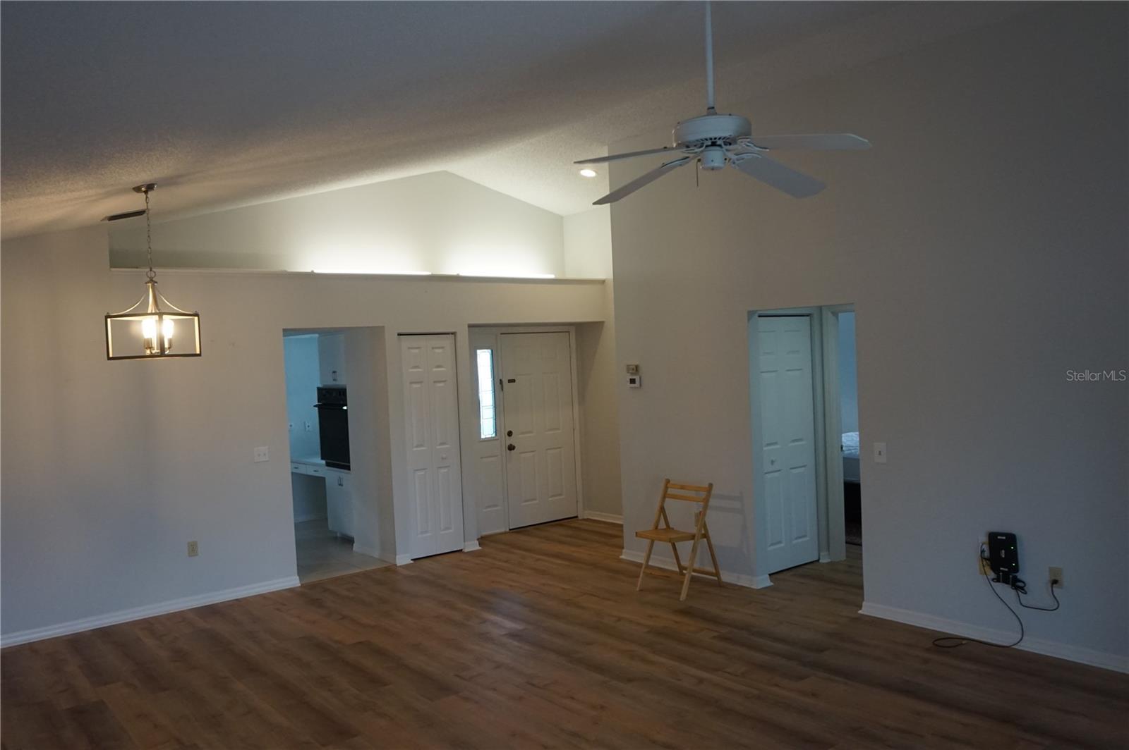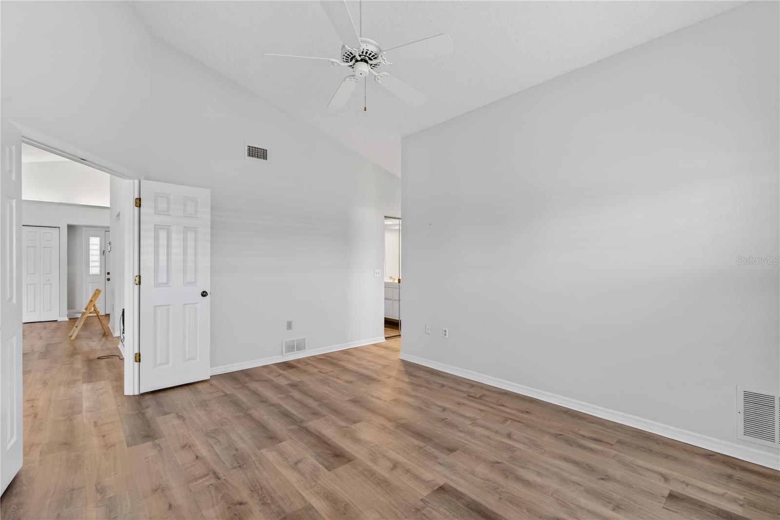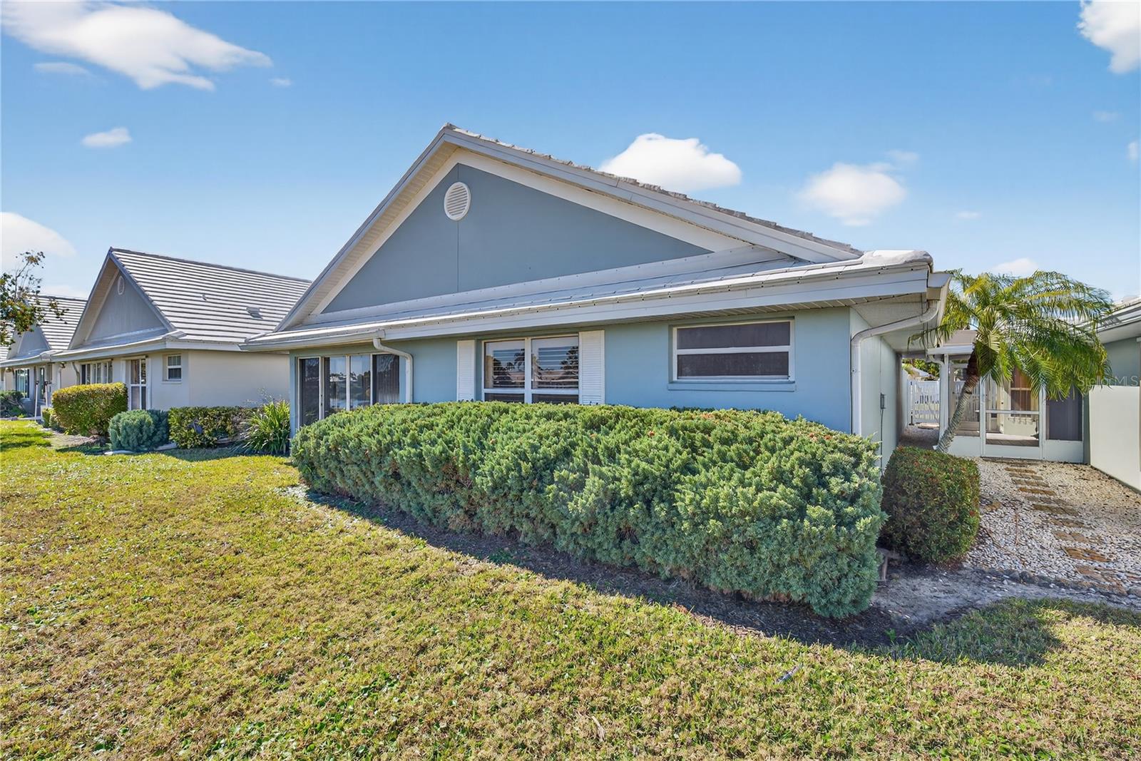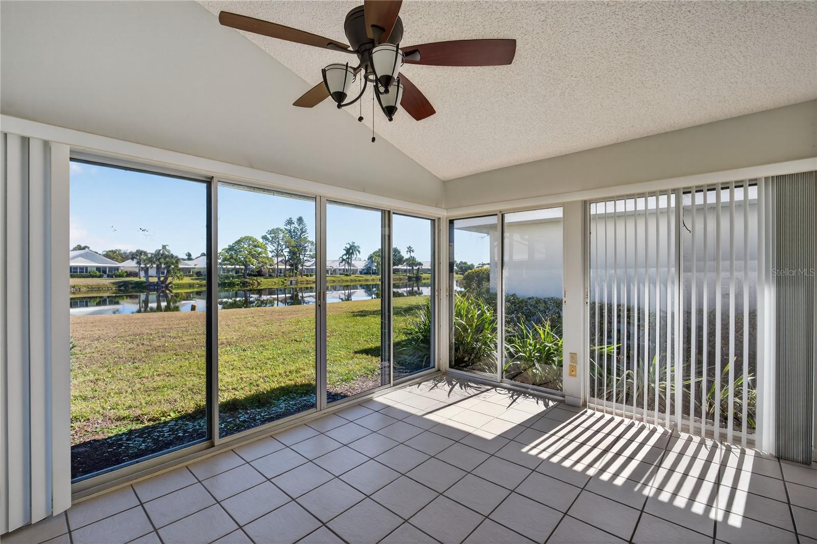 Welcome to this inviting residence in the highly sought-after community of Harrington Lake at Plantation Golf & Country Club. This spacious two-bedroom, two-bath villa with a two-car garage offers an ideal combination of comfort, convenience, and scenic views, making it a wonderful opportunity for year-round living or a seasonal retreat. Recent updates include a new roof in 2024, new ac in 2021, new water heater in 2025. As you step inside, you are welcomed by soaring cathedral ceilings that create an open and airy atmosphere. The main living areas feature durable laminate flooring that adds warmth and character, while the kitchen is finished with easy-to-maintain tile. Large windows allow natural light to flow throughout the home, enhancing its bright and welcoming appeal. The kitchen is designed with both functionality and style in mind. White cabinetry provides a crisp, clean backdrop, complemented by extensive countertop space that makes cooking and entertaining a breeze. The kitchen is equipped with a built-in wall oven and an electric cooktop situated on the island, offering convenience for meal preparation. In addition, there is a built-in desk, perfect for keeping organized, and plenty of room to accommodate a breakfast table. Whether you’re enjoying a casual meal or preparing for gatherings, this kitchen is well-suited for a variety of needs. The primary suite is a peaceful retreat, complete with a walk-in closet that provides ample storage. The primary bathroom features dual sinks, a soaking tub, and a separate walk-in shower, creating a private space for relaxation and comfort. The guest bedroom and second full bathroom are equally well-appointed, ensuring that family and visitors feel right at home. This residence offers multiple spaces to enjoy the Florida lifestyle. A Florida room provides additional living space under air with tranquil views of the pond, while the separate screened lanai allows for comfortable outdoor relaxation. From morning sunrises to evening sunsets, the setting offers a beautiful backdrop for daily living. The home is also topped with a tile roof, adding to its curb appeal and long-lasting durability. Harrington Lake is part of the master-planned Plantation Golf & Country Club, one of Venice’s premier communities known for its picturesque lakes, manicured grounds, and friendly atmosphere. Residents enjoy access to a community pool, social activities, and beautifully maintained common areas. Membership at Plantation Golf & Country Club is optional and offers a wide range of amenities, including championship golf courses, tennis, pickleball, fitness facilities, dining, and a full calendar of events. With its convenient location, the community is just minutes from shopping, dining, Gulf beaches, and all that Venice has to offer.