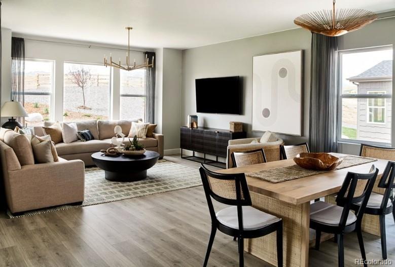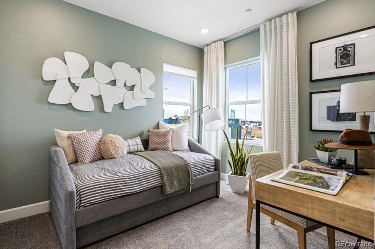 What's Special: Close to Park | Flex Room | 2nd Floor Laundry Room | Deep Backyard. New Construction - March Completion! Built by America's Most Trusted Home Builder. Welcome to the Estes at 28425 E 4th Avenue in Sky Ranch. This charming new home welcomes you with an inviting entry that leads to a flexible main floor room and a convenient powder room off the foyer. Continue inside to discover a spacious kitchen with a large pantry and an eat-in island that opens to the airy great room and dining space, creating an easy flow for everyday living. Upstairs, the bright primary suite offers plenty of natural light along with an en suite bath and walk-in closet. Three secondary bedrooms, a full bathroom, and a laundry room complete the second floor and deliver comfortable, thoughtful living for everyone in your home. Sky Ranch, a vibrant master-planned community in Aurora, Colorado, designed for connection, comfort, and Colorado living at its best. Located just south of I-70, the community offers quick access to E-470, Denver International Airport, and downtown Denver, making your daily commute feel effortless. You’ll enjoy the convenience of nearby shopping and dining at Southlands Mall, plus endless outdoor recreation with more than one hundred parks, thousands of acres of open space, miles of trails, and nearby golf courses. You'll appreciate the newly opened K-8 charter school and the attainable pricing that makes homeownership possible. Sky Ranch also features a four-acre neighborhood park and quick access to Hogan Park at Highlands Creek, only a few minutes away. It’s a welcoming neighborhood where every day feels a little more connected and a little more inspired. Additional Highlights Include: Upstairs bedroom in place of loft and slide-in gas range in place of electric. Photos are for representative purposes only. MLS#5975933