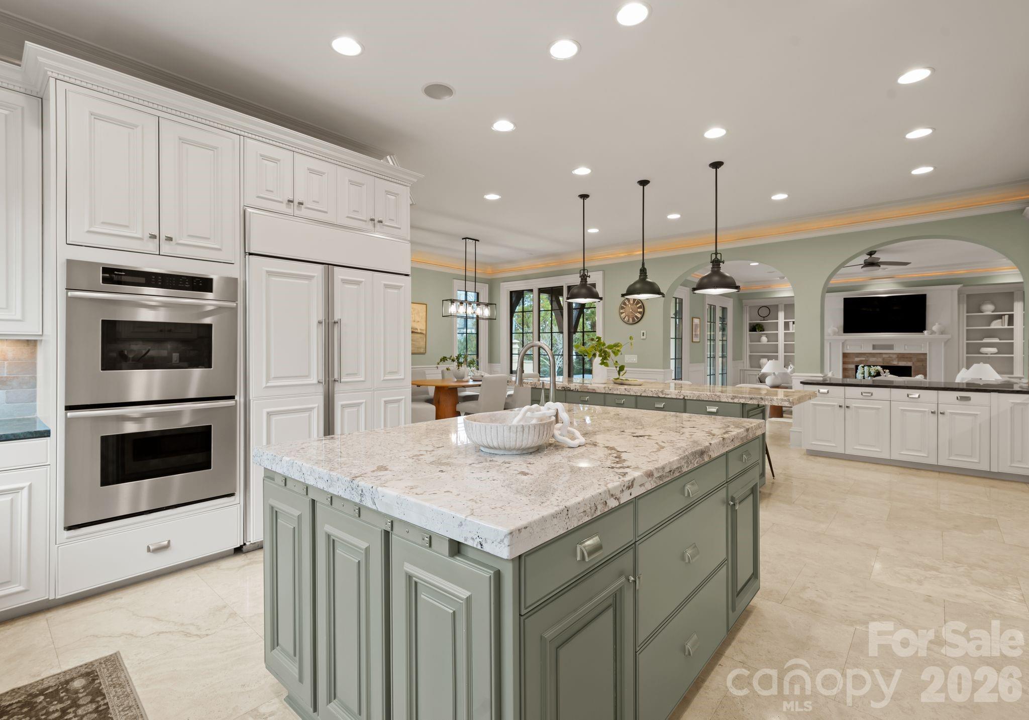 Set along the 1st fairway of The Club at Longview, this elegant estate delivers exceptional golf course living in one of Waxhaw’s most prestigious gated communities. This stunning home has three thoughtfully designed levels, ideal for both everyday living and elevated entertaining. The main level offers a stunning den with fireplace, and spacious great room with heated travertine marble flooring throughout (excluding the primary suite and closets). The exceptional chef’s kitchen is a true highlight, featuring two oversized islands, two refrigerator/freezers , and two dishwashers, along with a gas range, double ovens, exhaust hood, microwave, and extensive custom cabinetry—perfectly designed for hosting and culinary use. A breakfast area and formal dining room provide versatile dining options, while a covered terrace extends living outdoors with peaceful views of the 1st fairway and a hot tub.