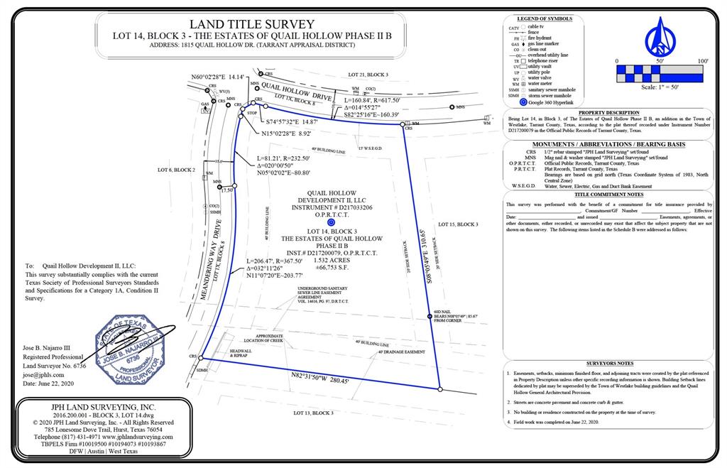 This breathtaking 1.64-acre corner home site on prestigous Quail Hollow Drive, provides a rare opportunity to craft your dream estate in one of North Texas' most coveted addresses. Build your masterpiece with the renowned Brian Michael Distinctive Homes to bring your vision to life on this exceptional canvas — where luxury, privacy, and possibility converge in perfect harmony. Quail Hollow is more than a community — it is a lifestyle. This magnificent 188-acre private enclave offers 24-hour gated and guarded security, picturesque surroundings, and an atmosphere of refined exclusivity that is simply unmatched in the region. Residents enjoy the prestigious choice of the internationally acclaimed Westlake Academy — an International Baccalaureate World School — or the highly sought-after Southlake Carroll ISD. Westlake living places you mere moments from world-class shopping, championship golf, and premier country clubs, all while maintaining the sense of seclusion and tranquility that defines this remarkable address. And with DFW International Airport just 13 minutes away, the world is always within reach. Your legacy estate begins here.