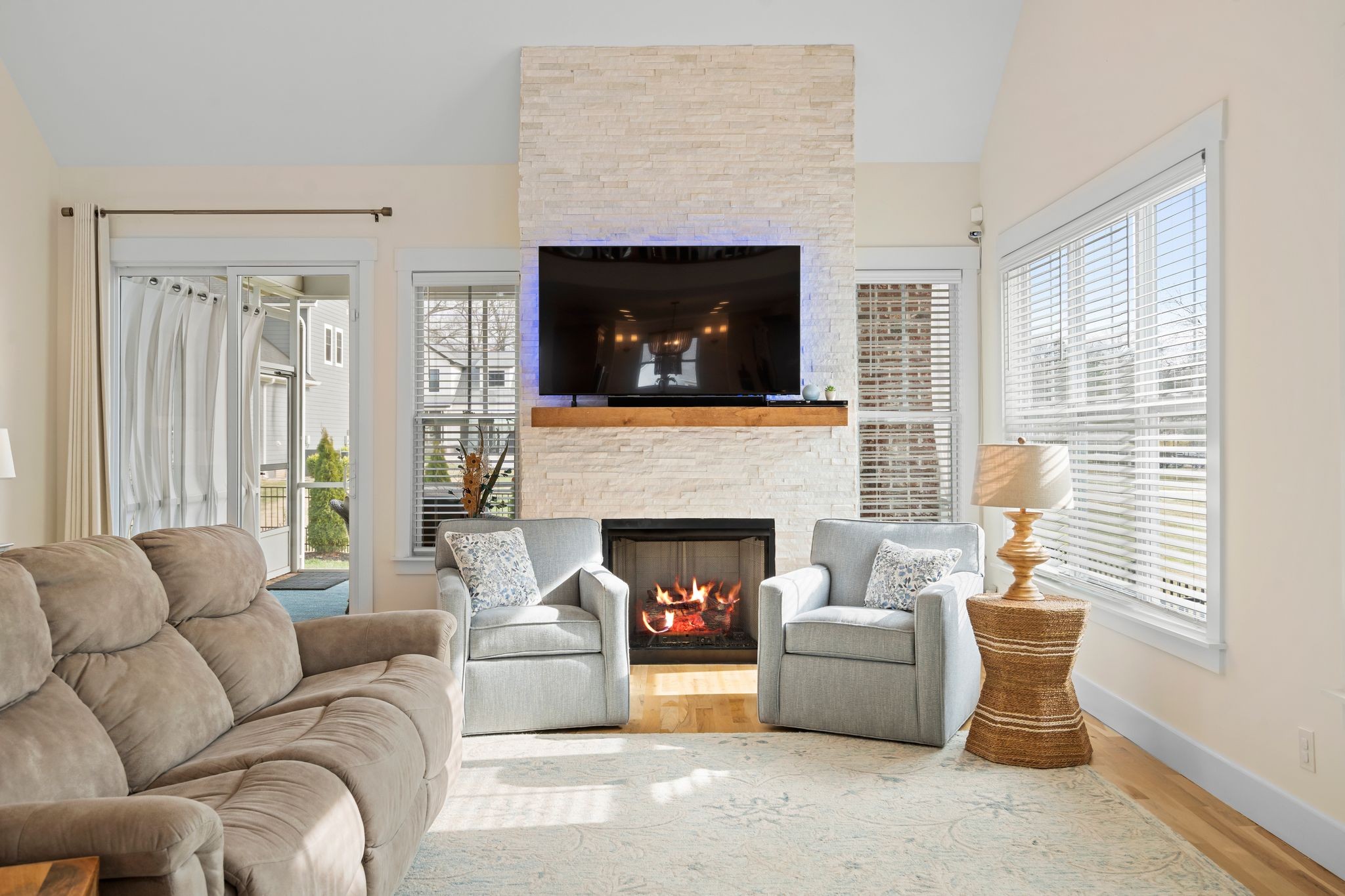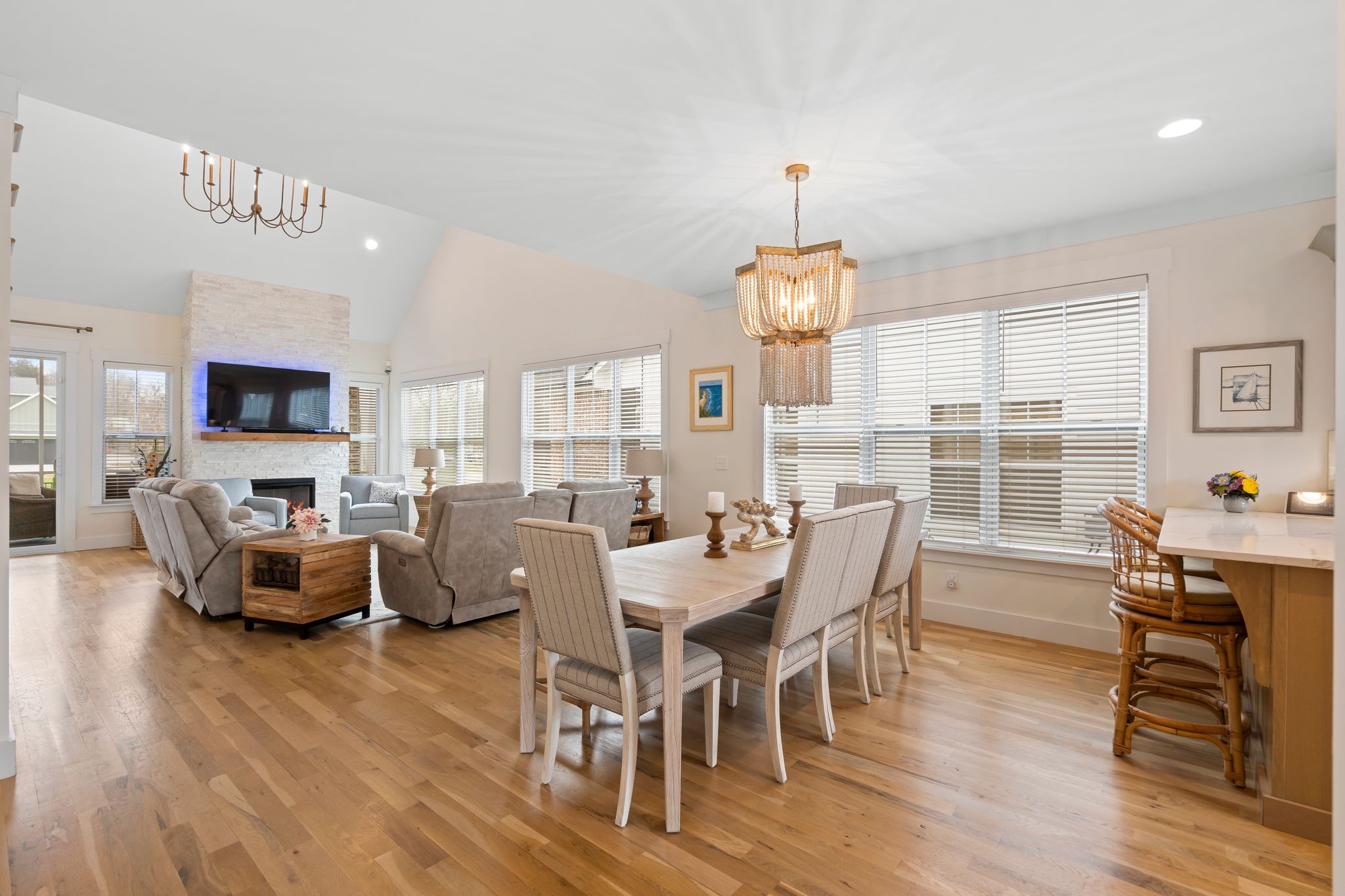 This 4 bedroom, 3.5 bath home with loft area works beautifully as a primary residence or as your serene vacation retreat. The open floor plan downstairs is filled with natural light, featuring a vaulted living room ceiling, gas fireplace and windows galore--perfect for gathering after a day on the lake. Beautiful wood and tile flooring make this home a standout! TWO large primary suites, one on the main level and one upstairs, offer flexibility for the homeowner as well as guests! Outdoor living truly shines with a large screened porch w/vaulted ceiling and a separate concrete grilling patio; ideal for relaxing, entertaining, or letting life slow down a bit. The large, fully fenced and landscaped backyard is just the right size for a puppy, playtime, and low maintenance outdoor living. Beautiful Quartz countertops, upgraded lighting, and upgraded plumbing fixtures add a polished and custom look throughout. Living in Twin Creeks means more than just a home--it's a lifestyle. Spend your days boating or kayaking and unwind in the evenings at Drafts and Watercrafts, the on-site restaurant and bar. Enjoy weekends filled with lake or pool time, clubhouse amenities, and social events where neighbors quickly become friends. Whether you're searching for your first lake home, a place to semi-retire, or a lake-area retreat, Twin Creeks Village offers the best of both worlds--everyday comfort and a life that feels like vacation. Historic Downtown Winchester is a gem of its own and is the perfect place to stroll, gather and experience the heart of the community. Sellers may be interested in a possible rent-back situation. A 2023 Yamaha AR220 and 4-seater golf cart are available as well.