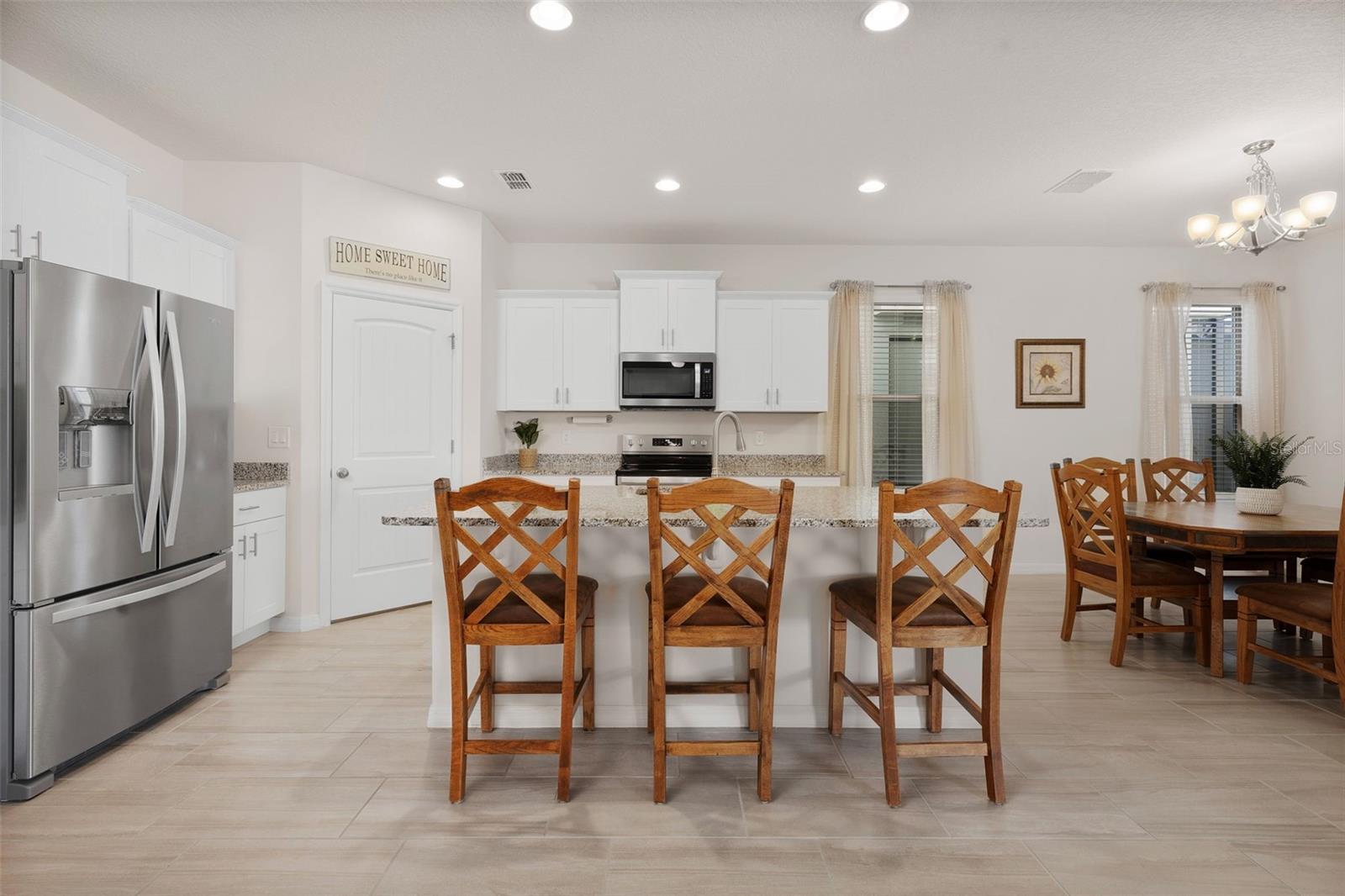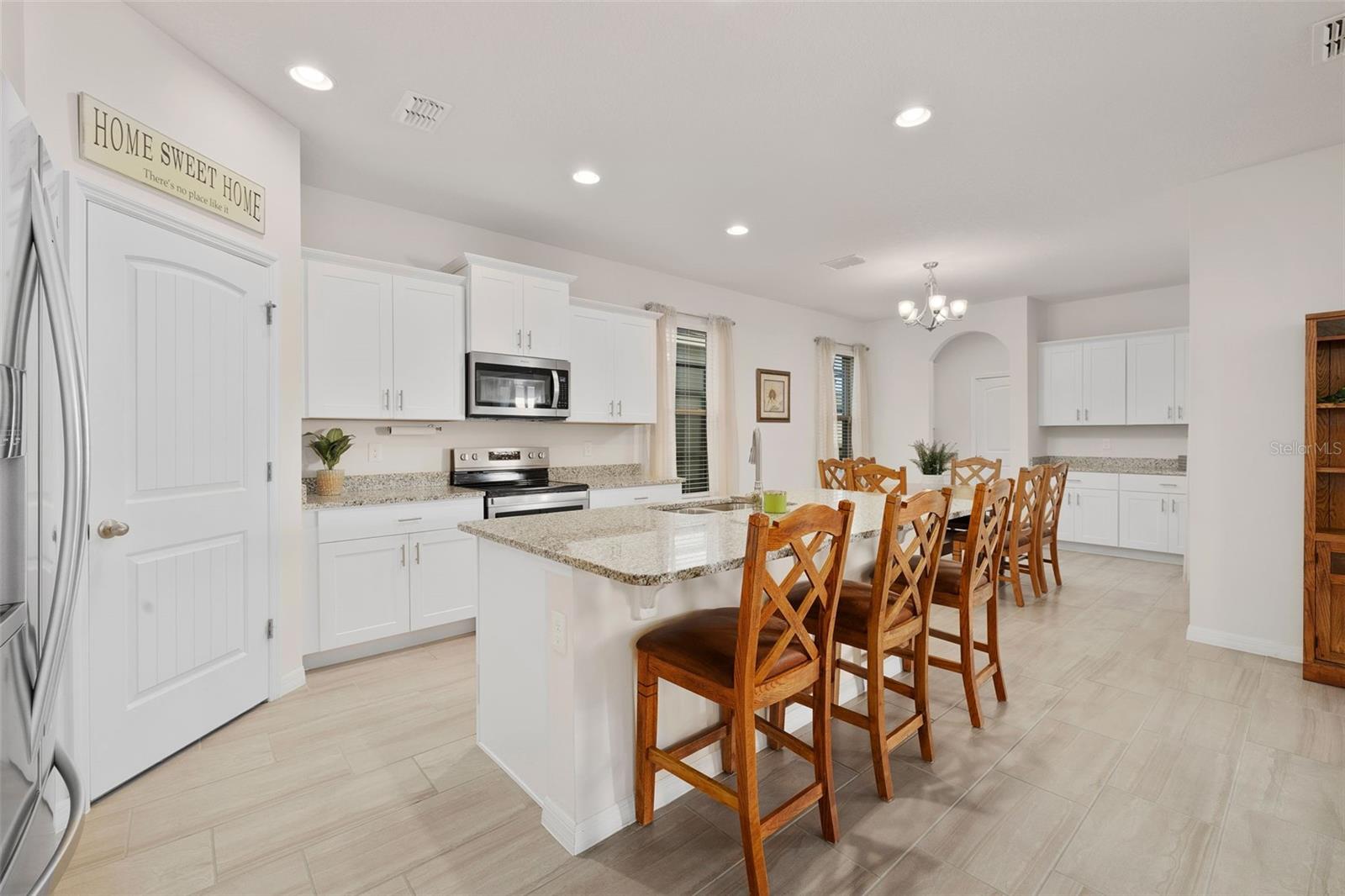 Step inside this immaculately kept home with tall ceilings, tons of natural light, and upgraded, stylish wood-looking tile flooring throughout the main living areas. The centrally located kitchen is a true showpiece—featuring a large island, abundant cabinetry, granite countertops, and stainless steel appliances—perfect for cooking, gathering, and entertaining. Home comes completely furnished if you choose. Complete Security System with all Cameras.