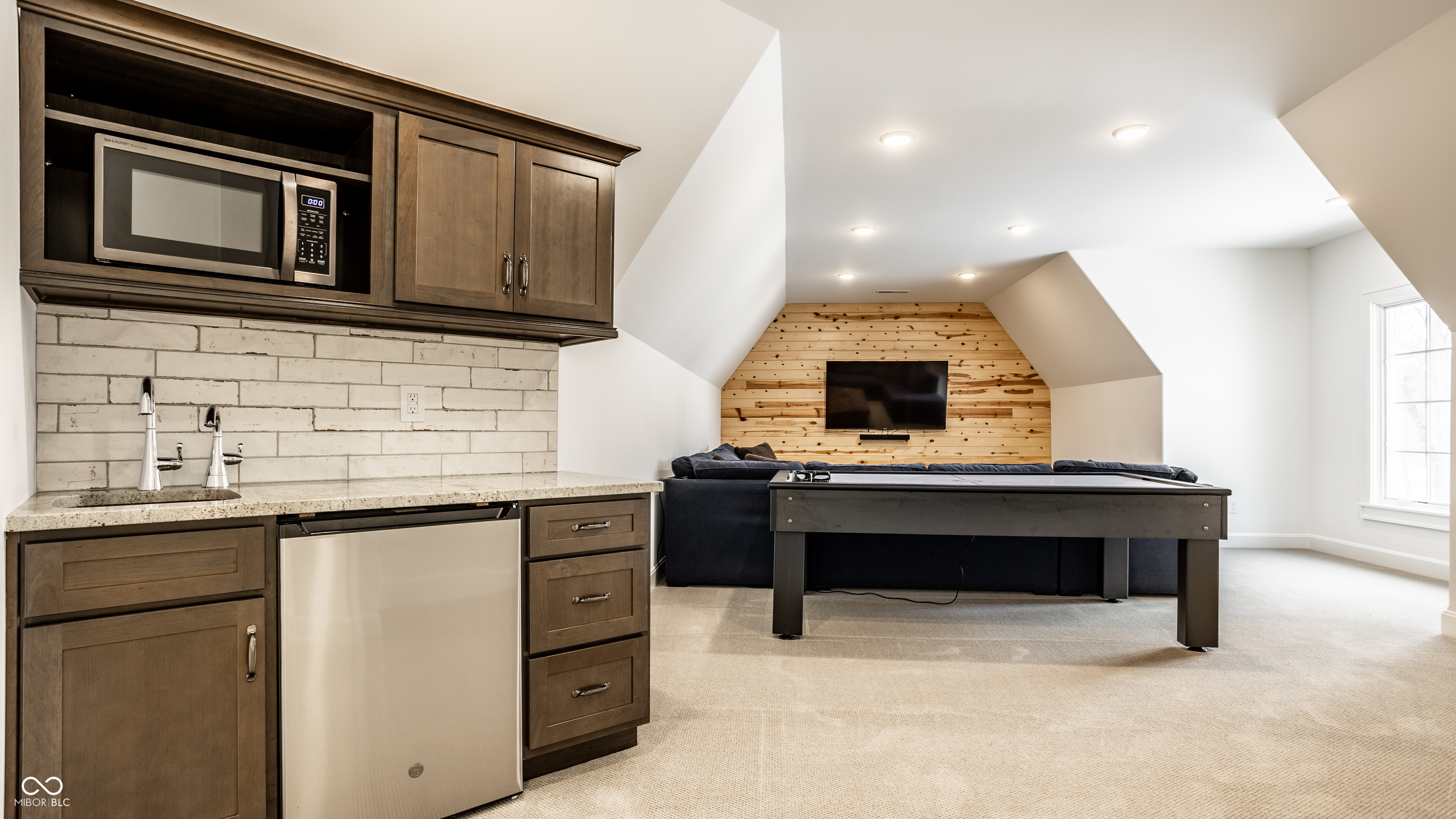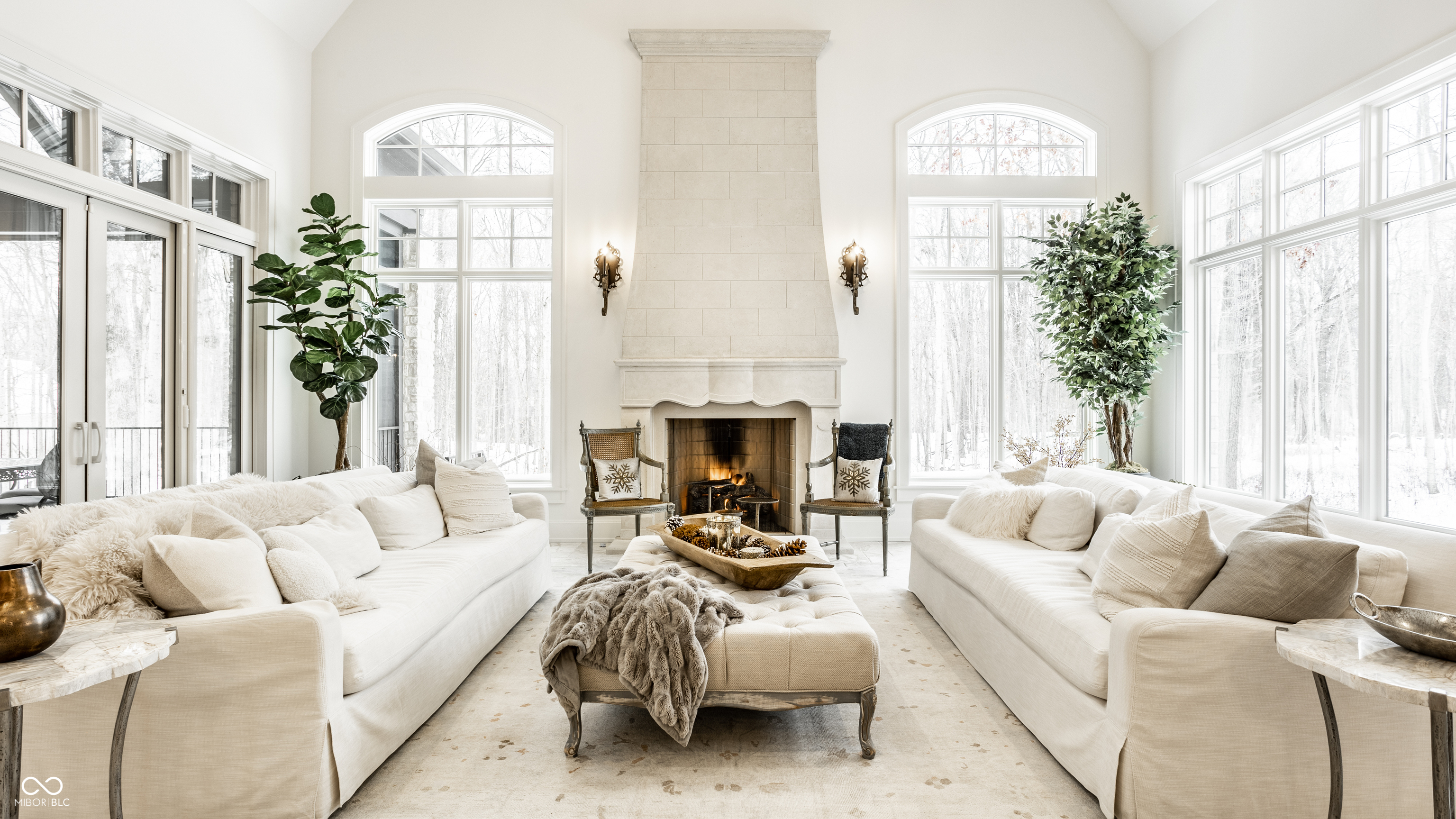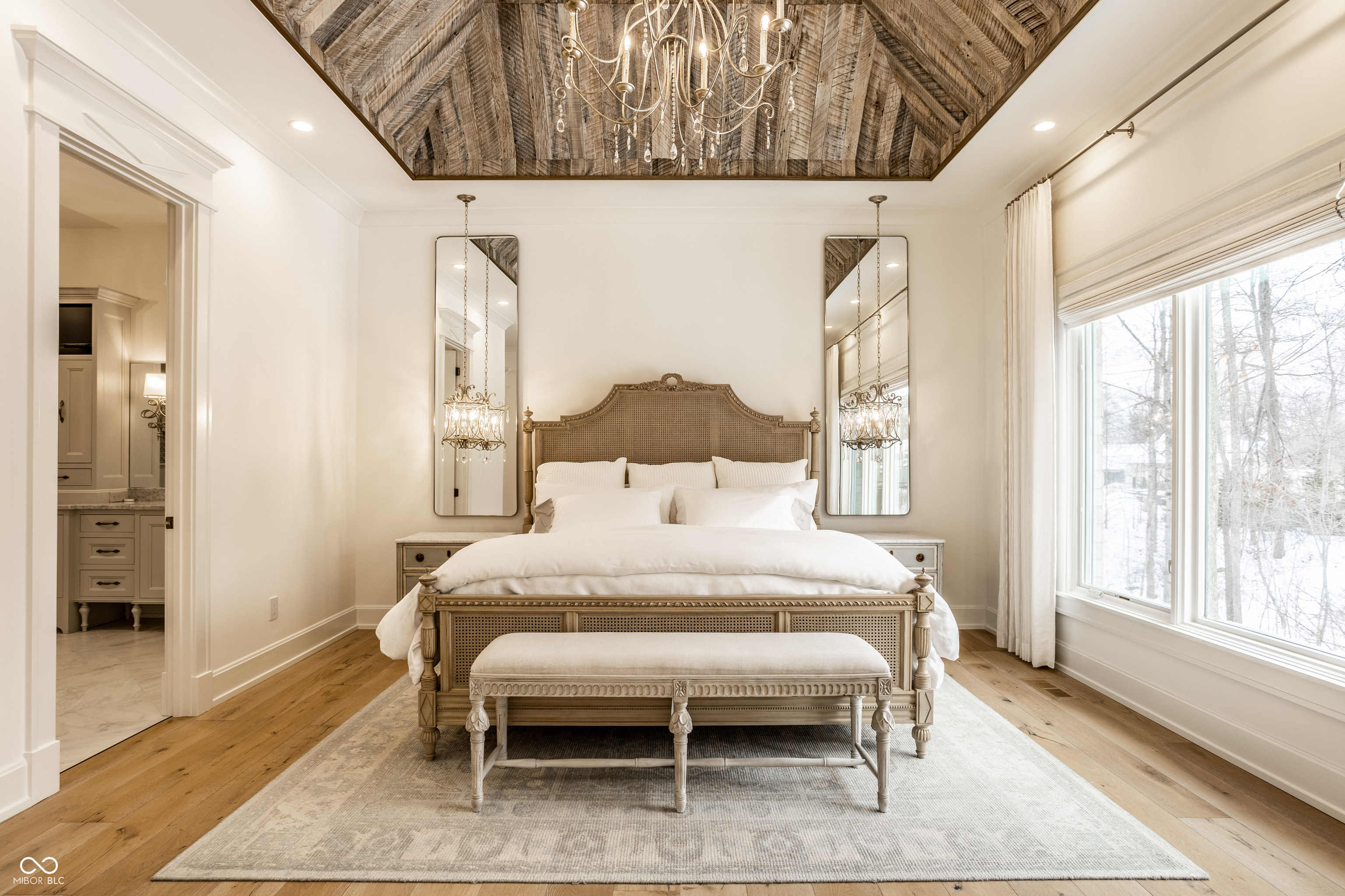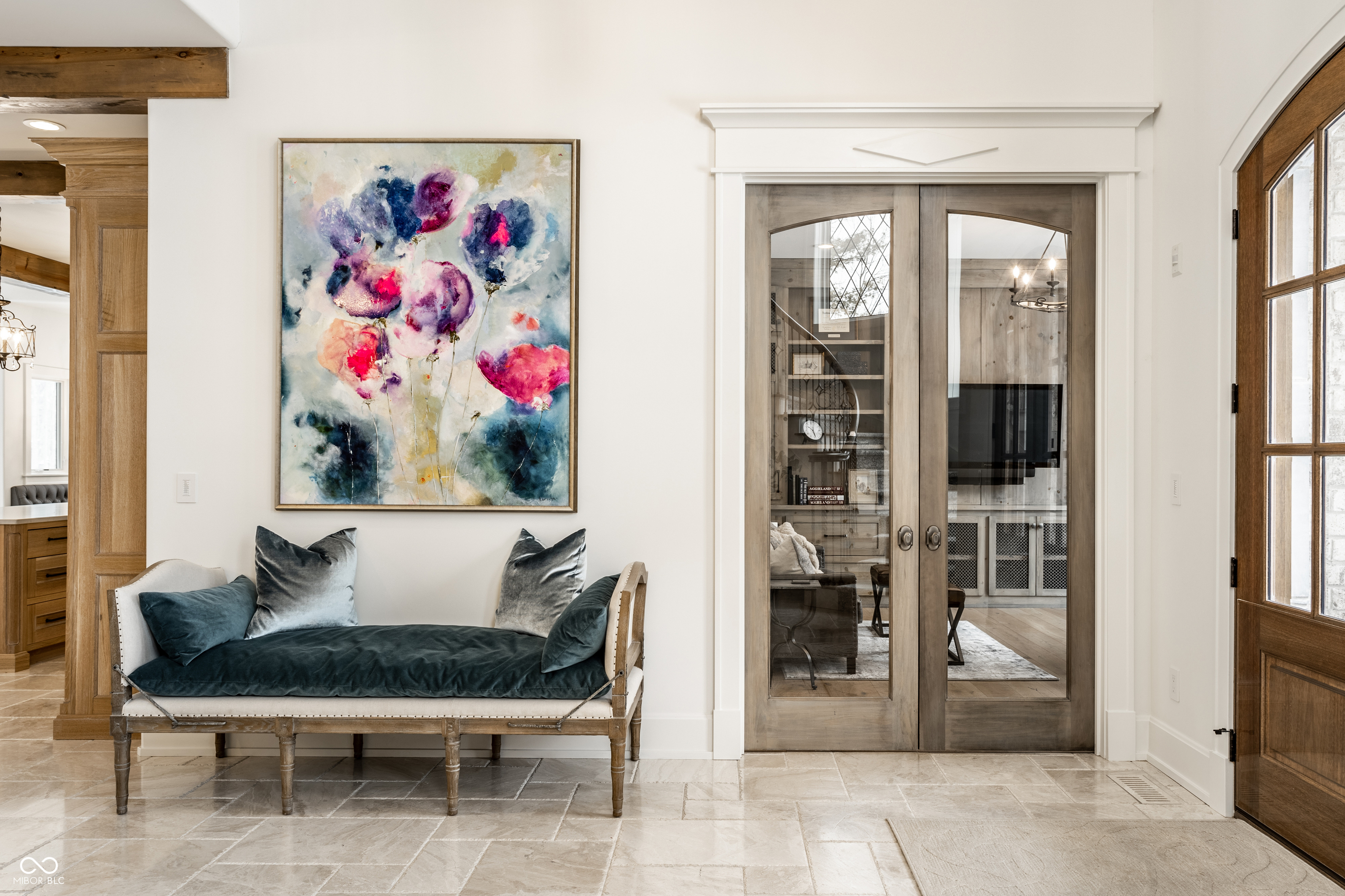 Exceptional custom home by Christopher Scott Homes on 4.15 wooded acres w shared pond in the heart of Zionsville. The wooded lot, set away from the road, offers privacy, but very convenient to Zionsville's charming village restaurants & shops, and top notch Zionsville schools. Spectacular French Country beauty built new in 2018, thoughtfully designed, well maintained, and one owner. 10,384sf, light & bright, travertine & white oak floors, vaulted ceilings w gorgeous beams, 5-6 Bedrooms, 5 Full & 3 Half Baths, 4 car garage. Enter the front double doors into the spacious Foyer w 20' ceiling & travertine floors. Follow the beautiful stone floors into the main entertaining area featuring the Great Room w lovely fireplace & vaulted ceilings w wood beams. Kitchen is perfect for entertaining w 12' island, Amish maple cabinets, Thermador appliances including Double Refrigerator, Double Ovens, 2 Dishwashers, Induction Cooktop w Limestone Hooded Vent. Spacious Dining Area & built-in banquette Breakfast seating offer many places to gather. Adjacent 625sf Porch w vaulted wooden ceiling, fireplace, grill, fan, heater & Phantom auto screens adds lovely outdoor space. Also on the main level is the Primary Suite and Office. Upstairs, 3-4 BR, 3 Full Baths & Bonus Room. Lower Level offers lots of room for entertaining w large Recreation space that includes pool table, shuffle board, 3 TV's plus Bar w 2 more TV's. Beautiful Bar has a limestone countertop with leather finish, refrigerator, 2 sinks, dishwasher & ice maker. Steps away is the temperature & humidity-controlled wine room w 500 bottle capacity. Plus Exercise Room, BR & Bath, large storage area, & walk-out to the backyard. 1,356sf 4-car garage features EV plug, 3 large storage closets, perfect for bicycles, strollers, golf clubs, gardening equipment & more. Backyard offers a fenced yard for pets and play, plus more yard, lovely woods, and shared pond to enjoy. Eagle Elementary, Zionsville MS, Zionsville High